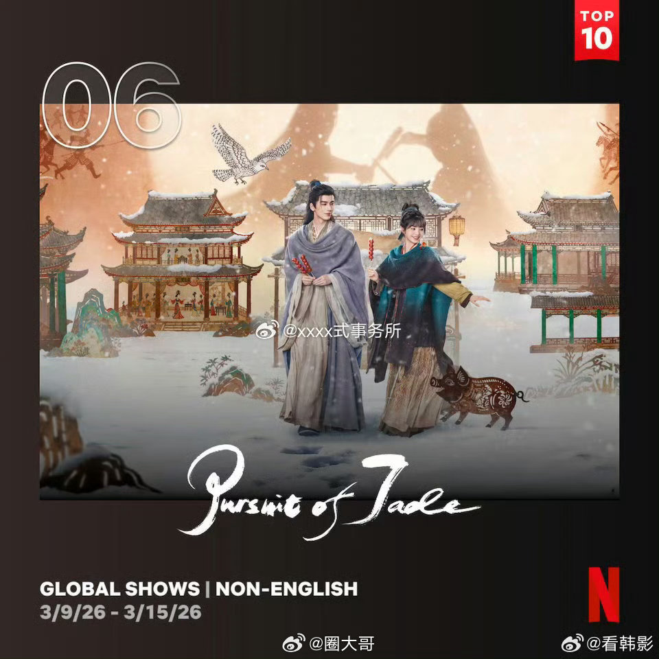 逐玉连续两周登网飞官方周榜谁看了不说一句:这个《逐玉》太牛了啊!电视剧《逐玉》连续两周登网飞官方周榜,看得出来《逐玉》在海外观众心中的认可度了,张凌赫和田曦薇还有孔雪儿邓凯等主演全员上桌,实绩喜人啊~张凌赫田曦薇逐玉网飞霸榜