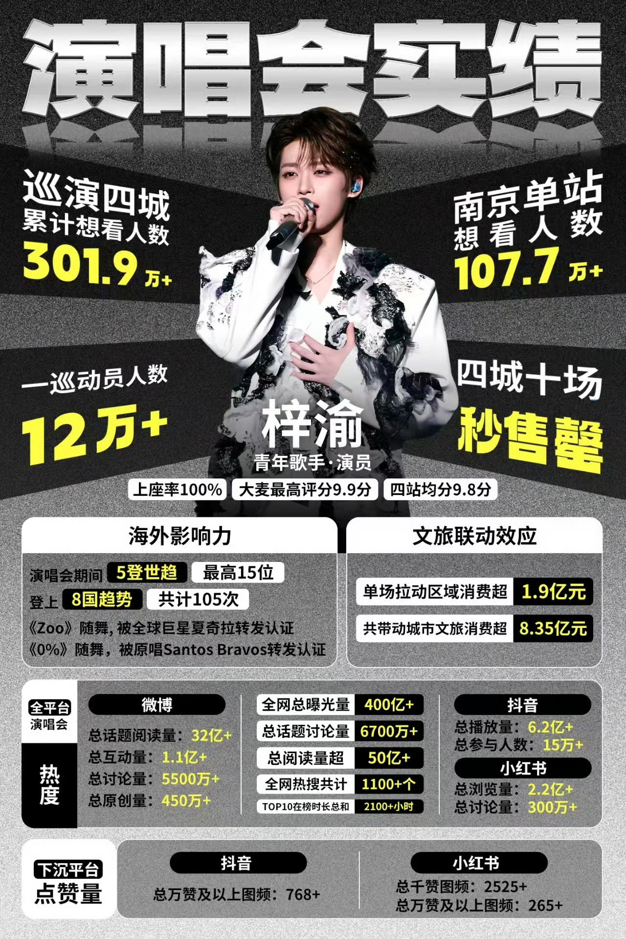 曝田栩宁梓渝线下演出被叫停只知道梓渝亮相新浪财经头条,其个人演唱会以显著的消费带动效应,单场助力城市消费提升显著,半年内持续激发区域文旅市场活力,成功入选“跟着演出去旅行”官方实践案例,为演出行业赋能实体经济发展树立了行业典范。