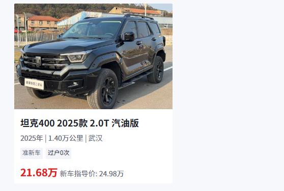 二手坦克400到底值不值得入手?今天咱们就掰开揉碎聊聊 一、首先价格确实跌出性价比了。 2023款Hi4-T插混版,当年落地超30万,如今二手市场20万上下就能拿下。2024款燃油智享版约27-29.5万,插混尊享型30-32.5万。一年车龄保值率79.7%,在插混车型中排名第二,仅次于问界M9。这意味着坦克400在二手市场相当“抗跌”,准新车比新车省3-5万,性价比已经凸显。 二、再聊聊版本差异。 2023年下半年及以后的Hi4-T插混版:二手市场的“黄金选择”。早期批次(2023上半年)存在车机卡顿、混动切换顿挫等小毛病,下半年批次已优化。插混系统综合功率300kW、扭矩750N·m,纯电续航105km,市区通勤可当电车开。 城市版 vs 越野版:90%时间在城市开,选城市版——有空气悬挂(升高50mm)、静音公路胎、座椅通风按摩,核心越野能力(分时四驱+后锁+蠕行模式)一样不少。真要下泥潭的再考虑越野版(AT胎+金属护板)。特别推荐带“越野包”的城市版(前差速锁+拖车取电口),二手只贵3000-5000,配置白捡。 2024款燃油版:适合不想要混动的用户,2.0T+8AT动力,油耗12.8-15L/100km,北方用户可选,但长期使用成本高于插混版。 三、选购建议 优先2023年下半年或2024款Hi4-T城市版。20-24万入手,插混省油、配置舒适、越野够用,这才是坦克400的“完全体”。 查三样关键信息:电池循环次数(低于50次算优秀)、4S店维保记录(有无托底、大梁校正)、是否原版原漆。这车带大梁,一旦事故伤到底盘,后期隐患大。 避开低配版和早期批次。2023上半年批次的小毛病已不是秘密,别贪那一两万的“早鸟价”。低配版缺少座椅加热通风和智驾辅助,日常体验打折扣。【来自懂车帝车友圈】
