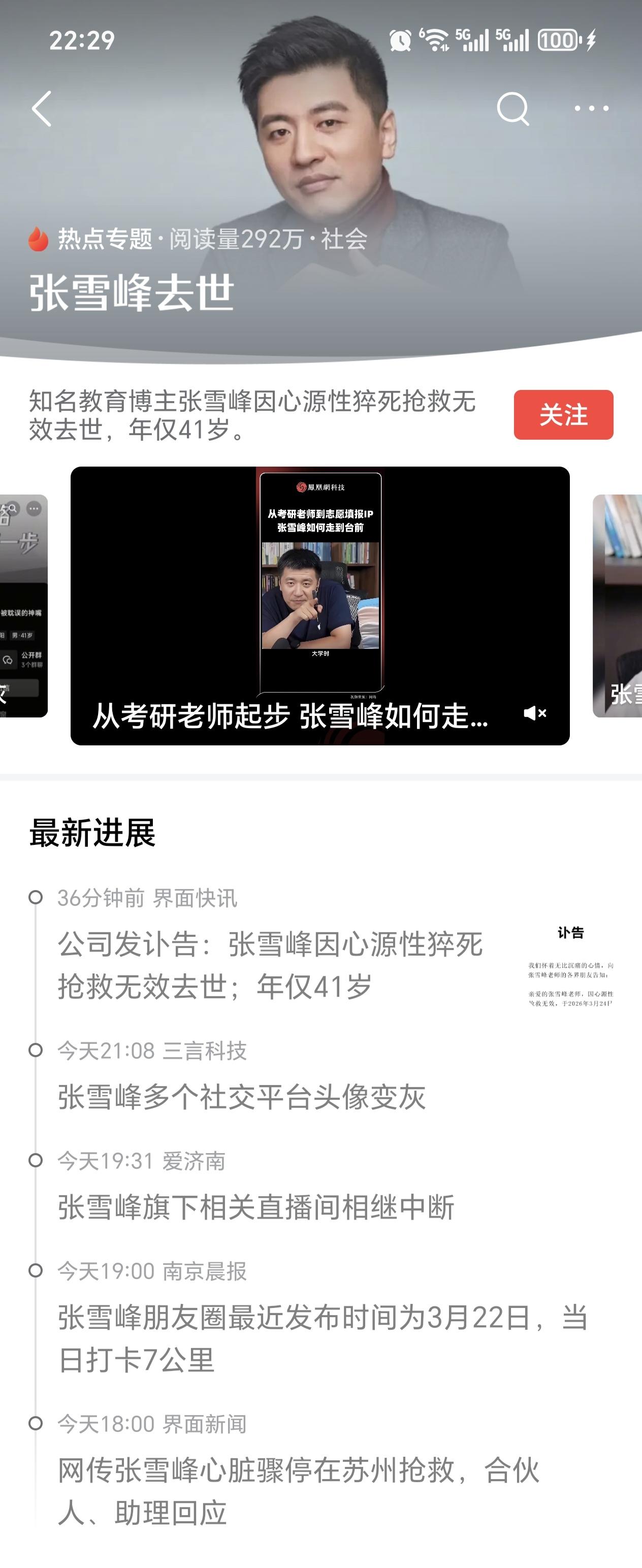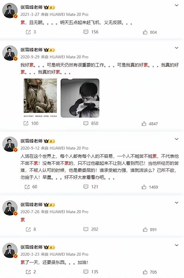 张雪峰曾在直播时说到他的人生目标时表示: “我的人生目标就是, 如果有一天我死了。 各大平台会有个热搜词条叫“张雪峰死了”。 还有就是他可能会成为一代人的回忆,就可能有那么几届或者十几届的学生会印象深刻地说“张雪峰当年可是个大名人就像大家说到刘德华和张学友这种明星一样,成为一代人的回忆吧!我希望能成为同学们或者家长们这一代人的那种回忆。至于你说挣多少钱对我现在来讲,已经不重要了!更重要的是能够帮到大家,能够帮到大家才是最重要的。” 从张雪峰本人在直播中的这段表述中, 可以知道他其实是一个跟赚钱相比, 他其实是一个更在乎身后名声的人! 他当年在直播中说这段话时, 应该也没有想到自己所要面对的“死亡”,会来的这么快! 在2026年3月24日这天, 他真的实现了“张雪峰去世”, 这个热搜词条挂满全网的愿望, 而且他的突然离世, 也确实会成为一代甚至几代人的深刻记忆! 但现在再看到张雪峰说的这段话后, 相信多数人都会忍不住潸然泪下 真的为张雪峰感到惋惜! 有时,真的是你永远不知道, 意外和明天,哪个先来? 事业正如日中天, 并且今年才41岁 人生壮年的张雪峰 就这样突然离世 给我们这个时代 又留下了一大憾事 愿张雪峰一路走好 今后都不用再那么拼 每天都能踏实睡个好觉!