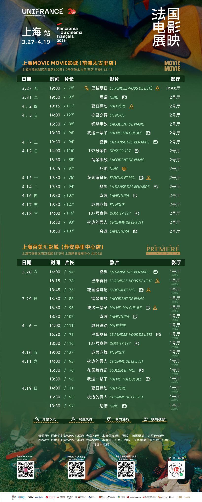 【2026法国电影展将于3月25日开启】 2026法国电影展将于3月25日启动,并持续至6月底,陆续在北京、上海、南京、武汉、杭州、成都、西安、广州、深圳、昆明十座城市举行。此次展映将带来《137号案件》《钢琴事故》《花园编舟记》《亦吾亦舞》等11部法国电影。苏菲·玛索担任本届形象大使,姜文担任宣传大使。上海站将于3月27日至4月19日举行,多部影片还将安排导演、嘉宾映后交流。