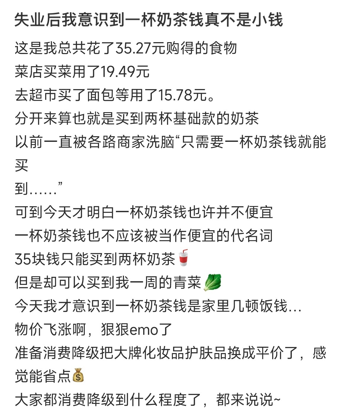 不上班后,消费观一下就被纠正了过来