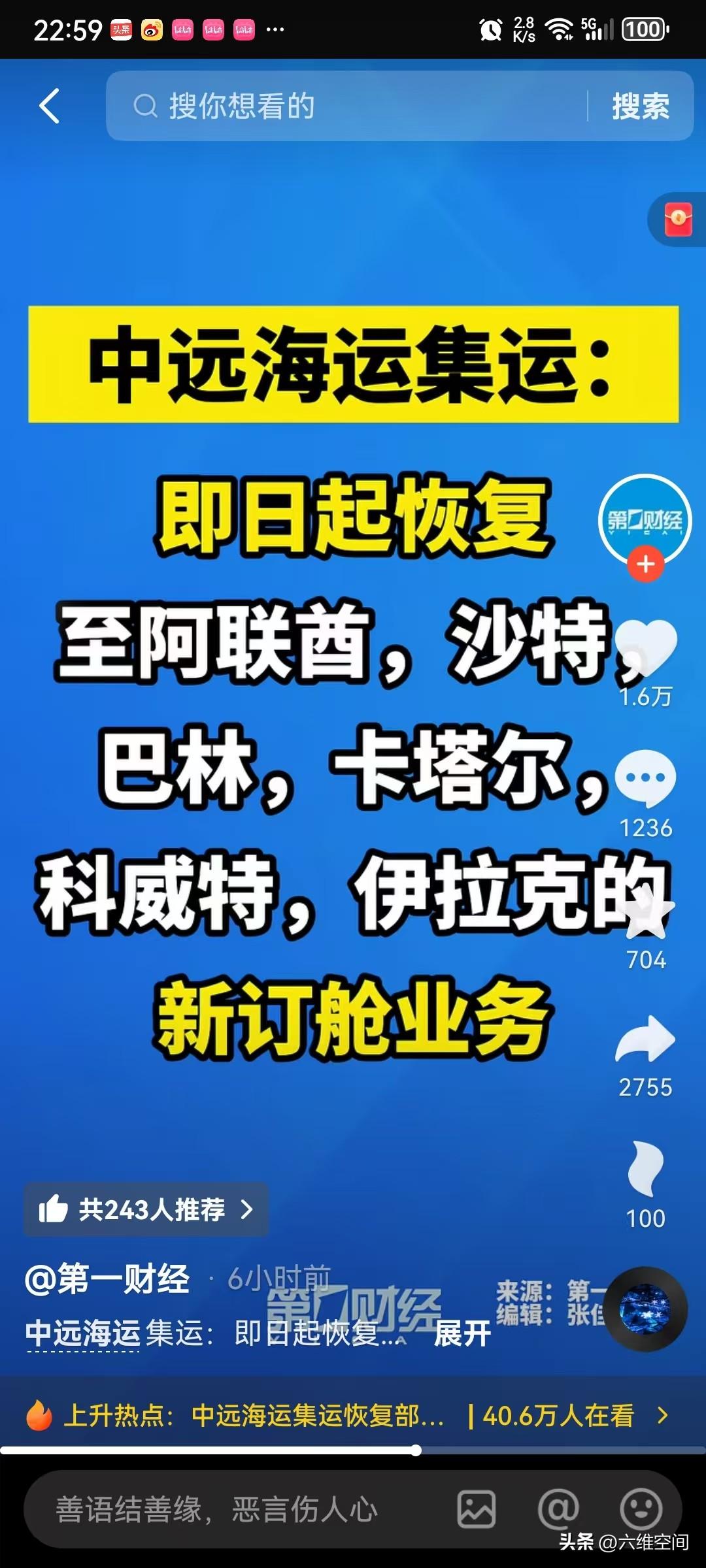 看到中远海运集运恢复中东海湾6国的新订舱业务的消息,很多人第一感觉是不是美伊战争要停了,霍尔木兹海峡是不是要恢复原样了!我觉得没那容易简单,现在伊朗控制着这个海峡,怎么会轻易放手呢?而且特朗普正在中东集结部队,看架势是要打地面战的! 小编觉得这个恢复订舱业务,应该是我们的船可以进出这个海峡,而且业务跟美以无关,所以可以进出这个海峡,而且伊朗也不想和全世界为敌,只要跟美以没有关系的船,基本都可以通过,我们的船应该就是属于可以自由进出这个海峡,所以恢复订舱业务!