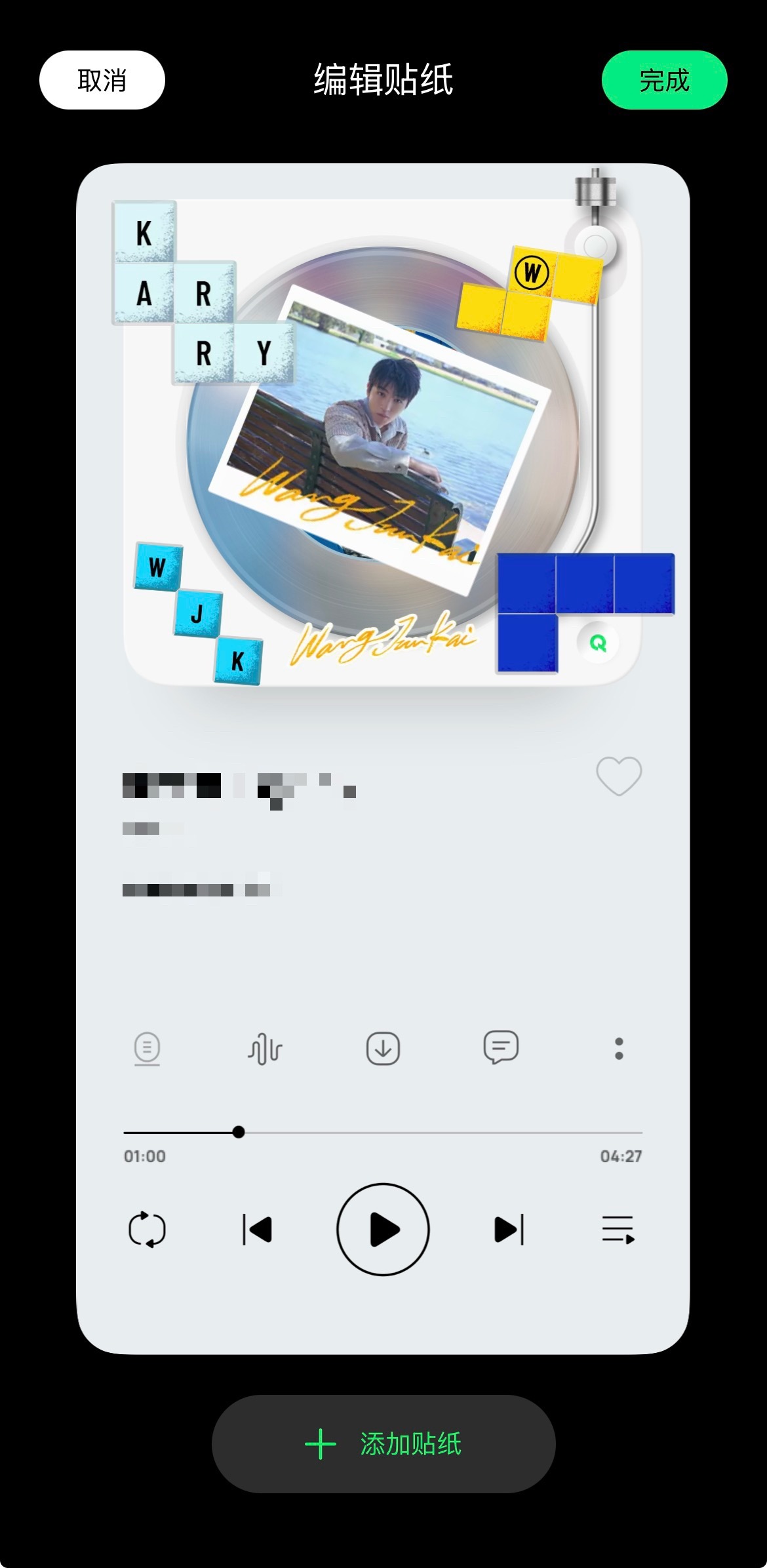 王俊凯新歌上线1️⃣《无人乐园》9:21发布,《你会找到我》下午5:21发布2️⃣《无人乐园》是唐恬作词,周传雄作曲歌曲进度条是‘w’(和预告海报一个风格)3️⃣有mv4️⃣是可调节的3D播放器5️⃣可以diy贴纸6️⃣《无人乐园》这首歌是“送给在喧嚣世界独自向前的你”7️⃣有独家写真