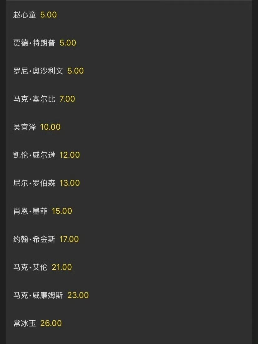 赵心童、火箭、小特并列第1! 凭借在世界公开赛打进决赛,奥沙利文重新被博彩公司看好,目前以1赔5和卫冕冠军赵心童、世界第一特鲁姆普并列世锦赛赔率榜第1! 塞尔比第4,吴宜泽高居第5。囧哥、萝卜、墨菲、巫师紧随其后,常冰玉第12位。
