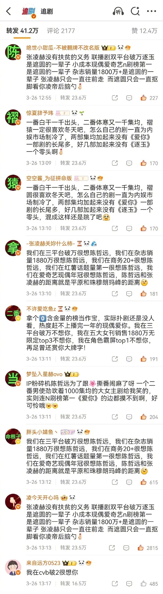 张凌赫的粉丝和陈哲远的粉丝互相给对方排字