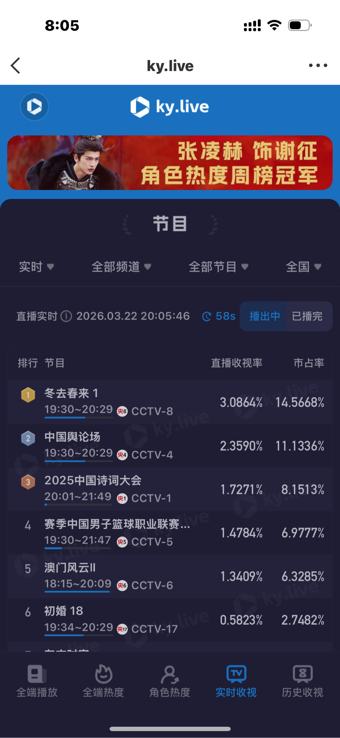 冬去春来刷新央八今年最快破三纪录冬去春来刷新央八纪录《冬去春来》开播收视直接炸场!开播仅30分钟,酷云实时收视率便飙升至3.1687%,刷新央八2026年度剧集最快破三纪录,位列央八历史开播破三速度前三。播出后更是一路领跑,多次斩获全网、CCTV-8及央视收视榜日冠,稳稳锁住全家收视,妥妥的黄金档收视霸主。