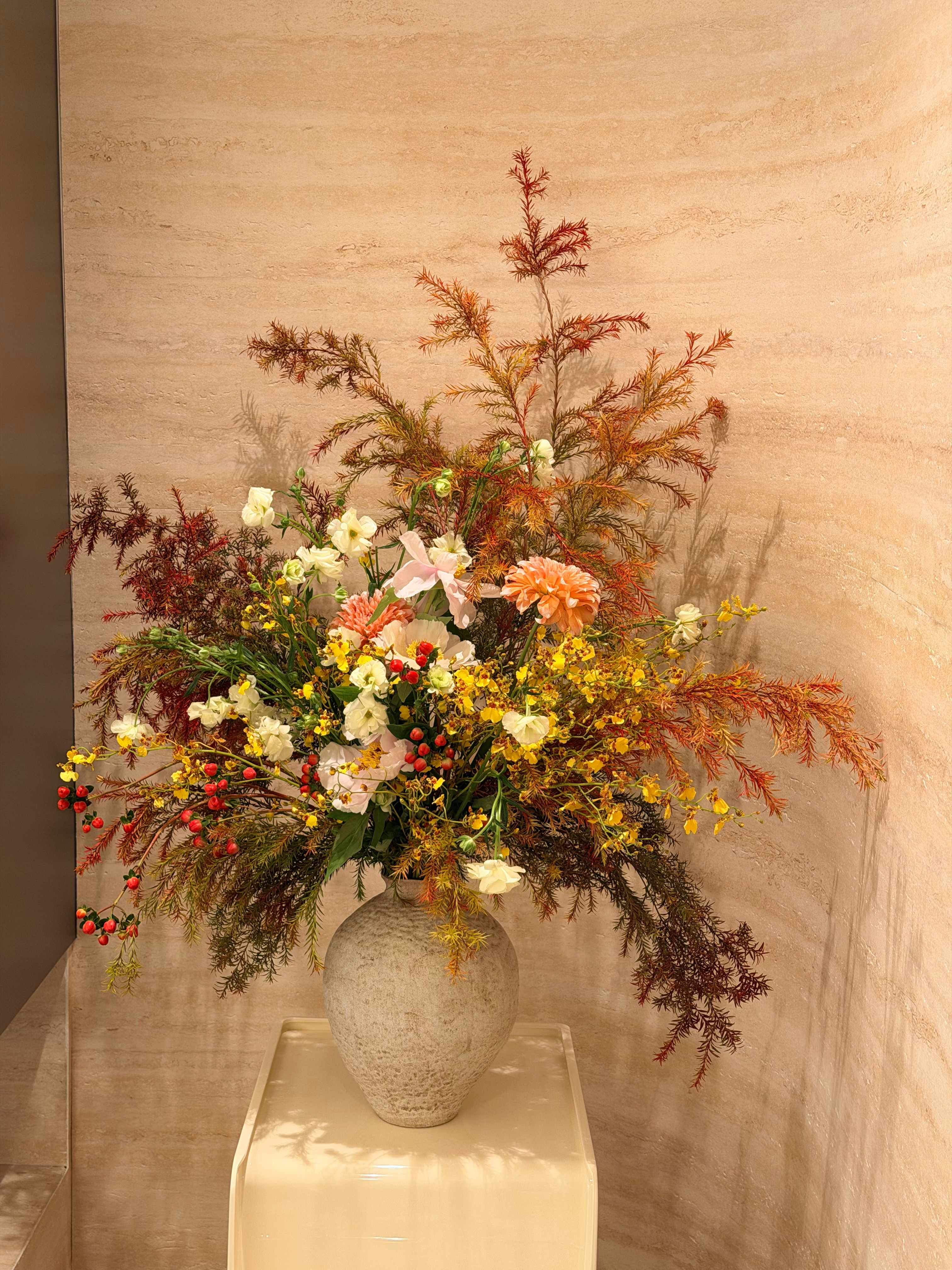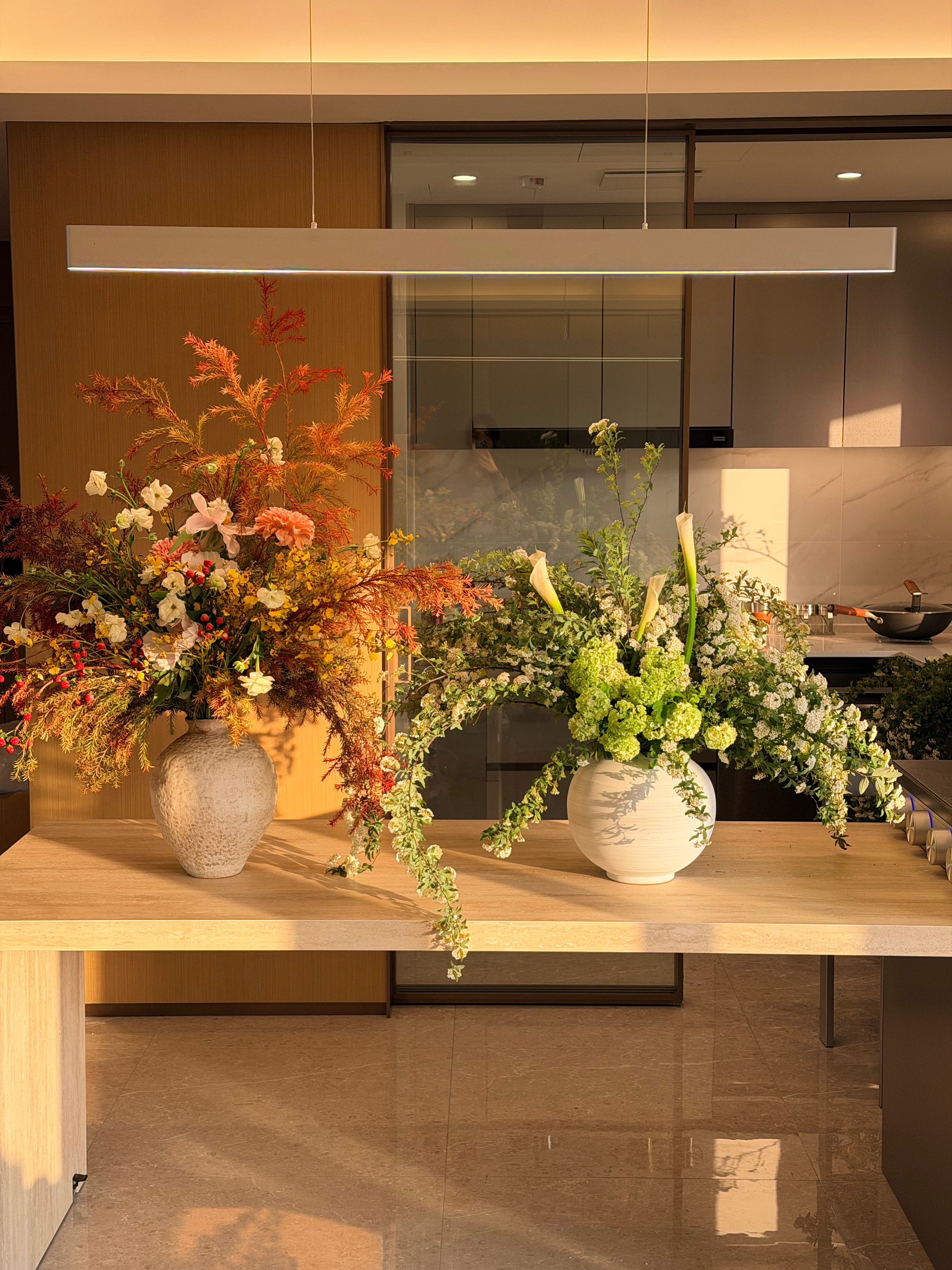 第二届插花比赛,左边黄橘请投1,右边白绿请投2。
