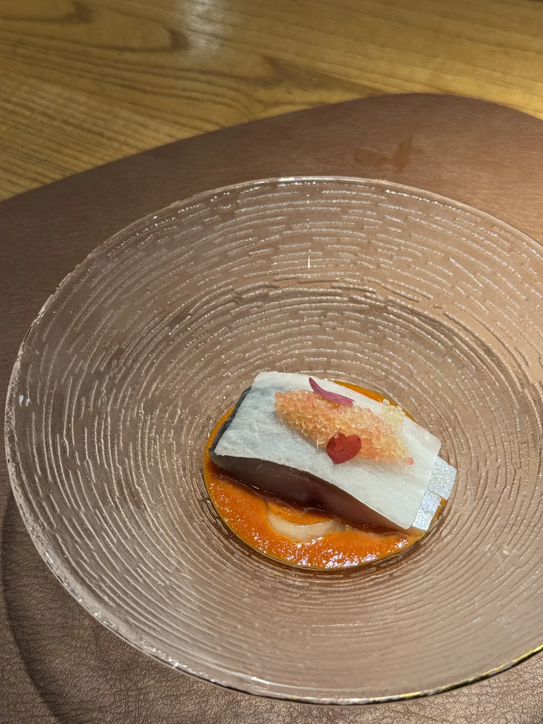 之前和朋友打卡了比较少见的韩式fine dining 终于有时间记录一下 不过这家已经换了新主厨了 我这个旧菜单就不细讲啦 - Number 9位于福田华侨城恒邦置地大厦B1 开放式厨房可以坐板前看厨师烹饪菜品 装修是黑色调极简现代主义风格 主厨融合了韩式和中式口味 整体味道偏重 星星人马卡龙很韩系,颜值超高超可爱 -