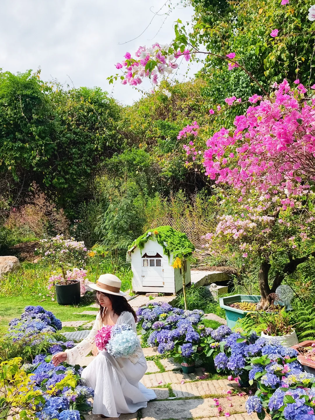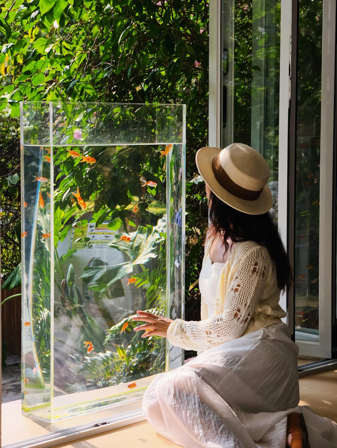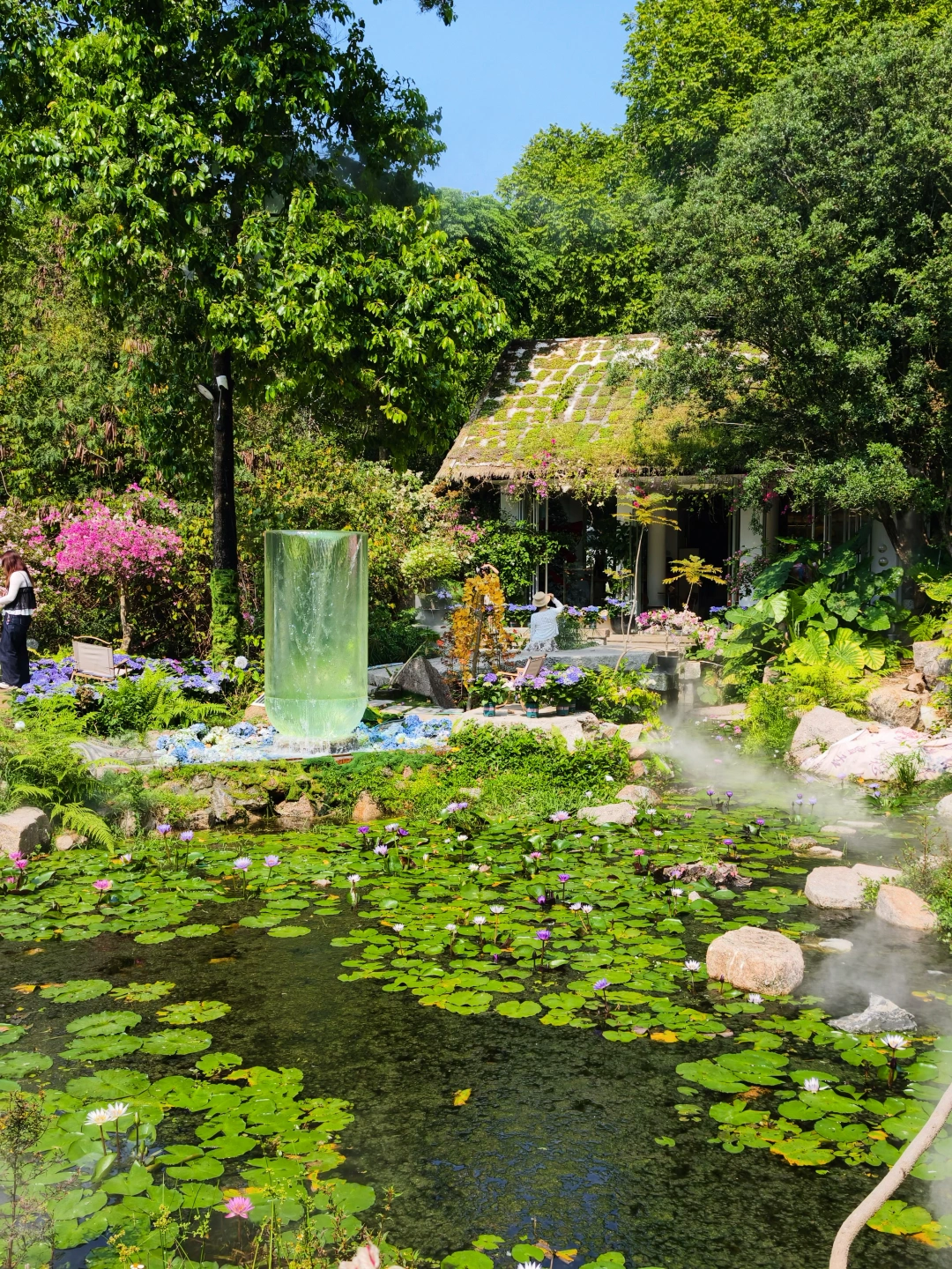 内部像爱丽丝仙境:金鱼缸、睡莲池、雾森、绣球花…
