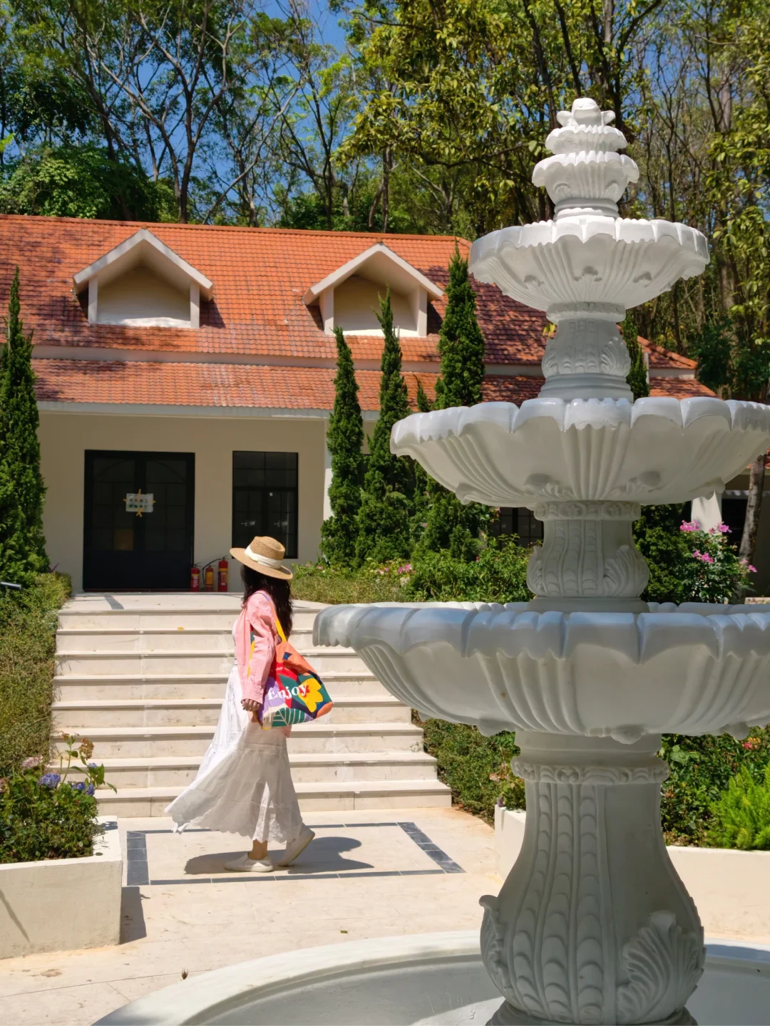 一秒穿越到南法! 红顶白墙、铁艺拱门,配上大片草坪,氛围感直接拉满。