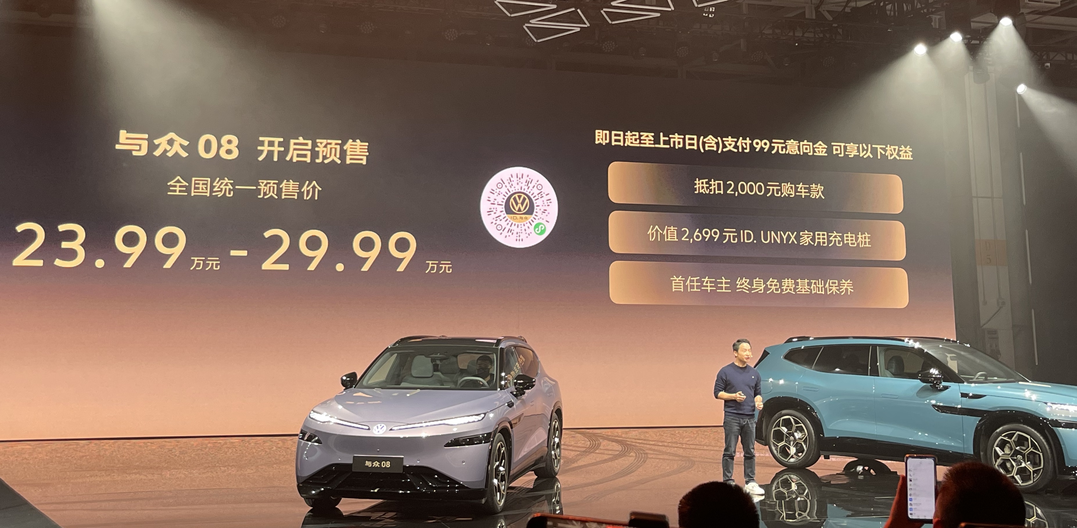 预售23.99万-29.99万元,532尺寸,800V架构,CLTC续航730公里,双腔空悬与魔毯预瞄,1500TOPS算力,双15英寸2.4K联屏,化妆镜、冷暖冰箱、双人床都配齐了——继上汽大众ID.ERA 9X之后,与众08又秀了一次今天的大众究竟有多懂中国新能源用户