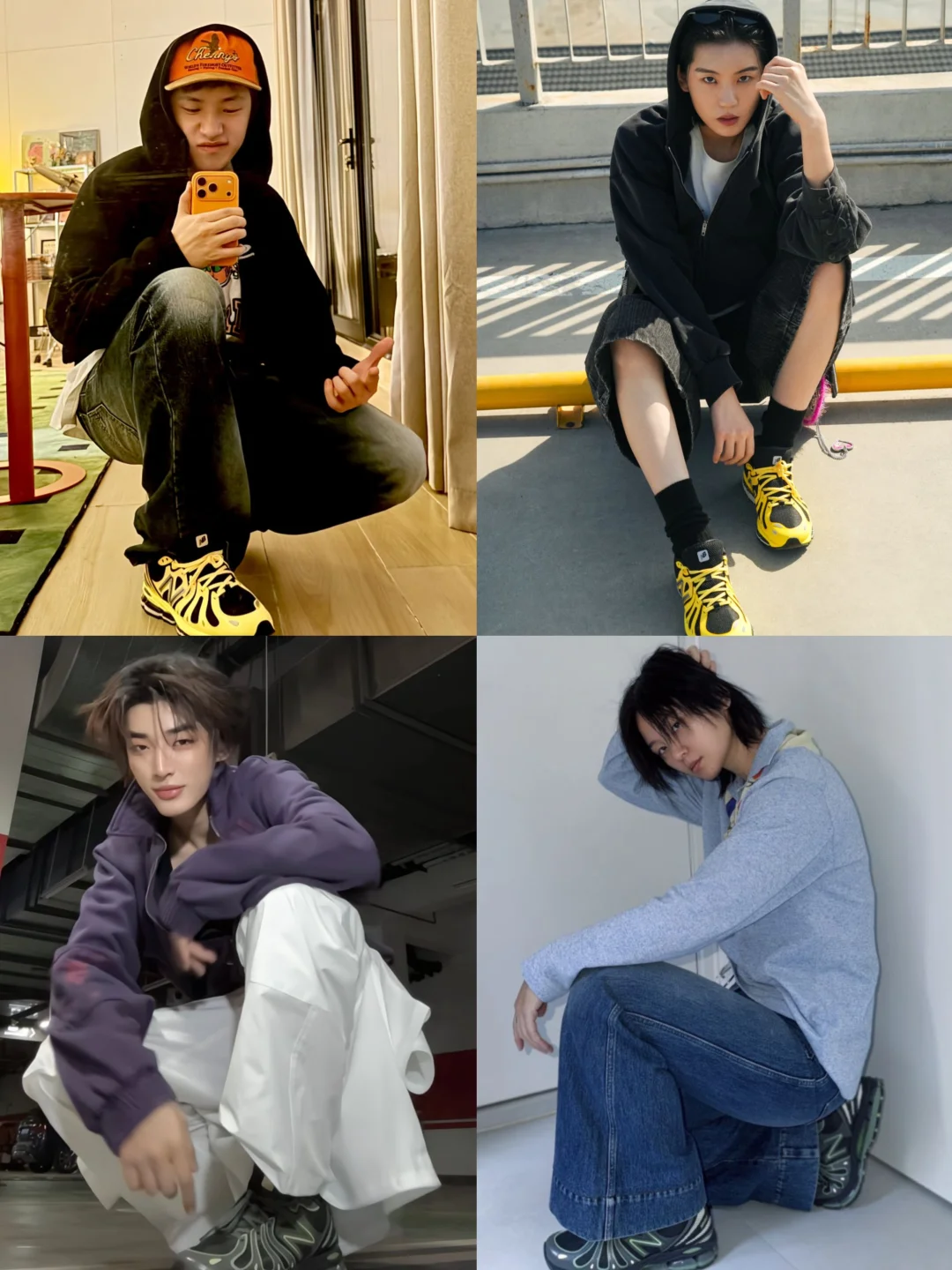 余承恩上脚黄黑配色,少年感与复古感完美融合,张扬又不失个性,精准契合他随性洒脱的穿搭风格;陆柯燃则穿出酷飒先锋感,利落版型搭配街头感造型,尽显率真自我的时尚态度;周笔畅选择灰绿低调款,简约中暗藏高级感,适配她沉稳又不失格调的人设,日常出街舒适又吸睛。