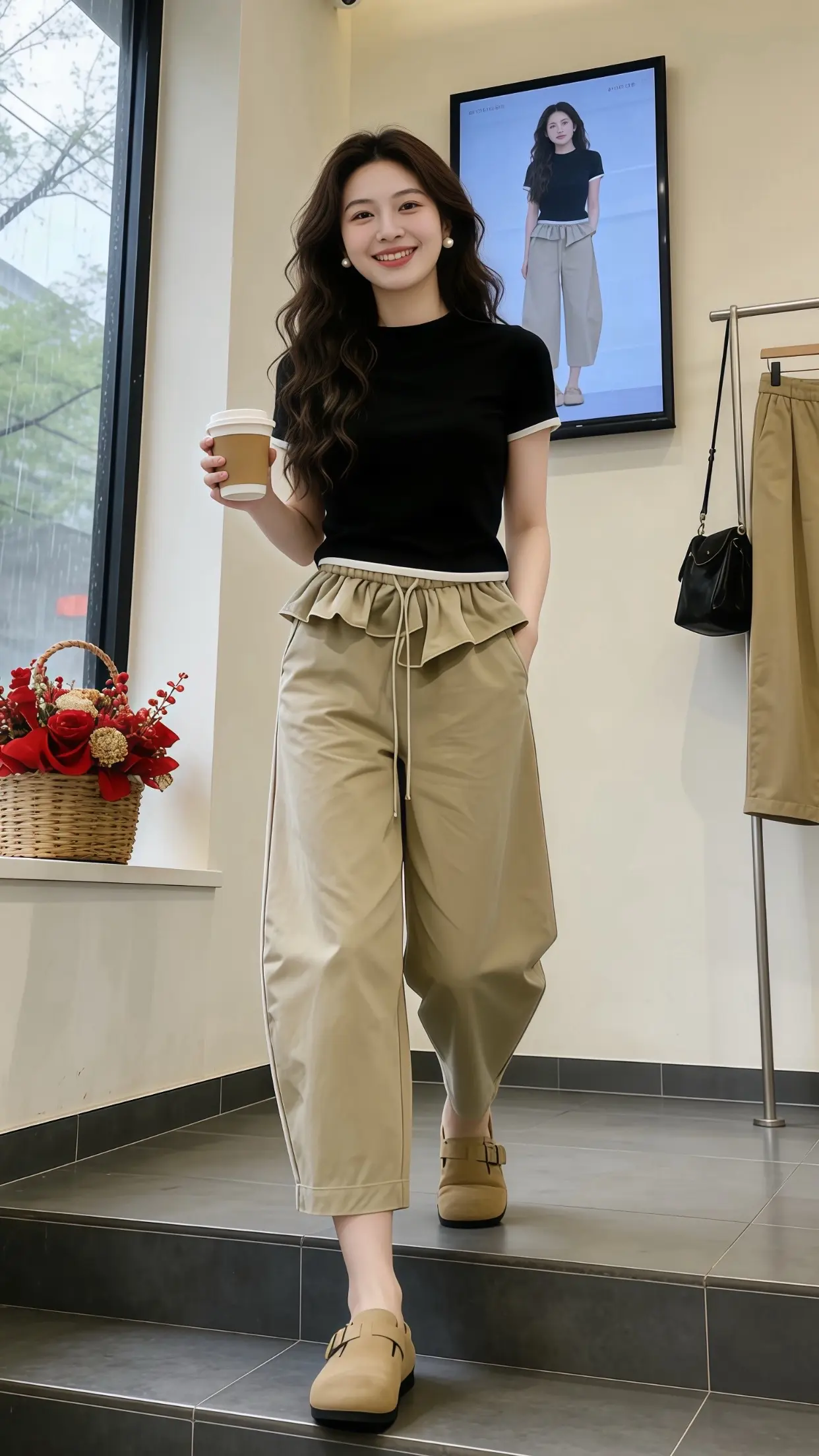 优雅黑裙搭配米色短裙,时尚又迷人!