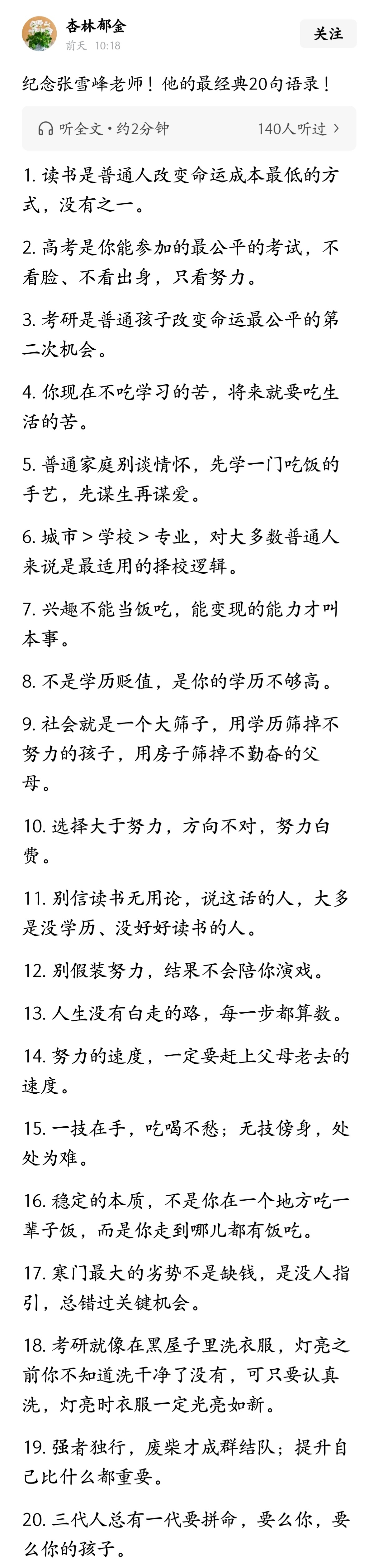 张雪峰最经典的20句语录,听进去了你就可以实现寒门逆袭。