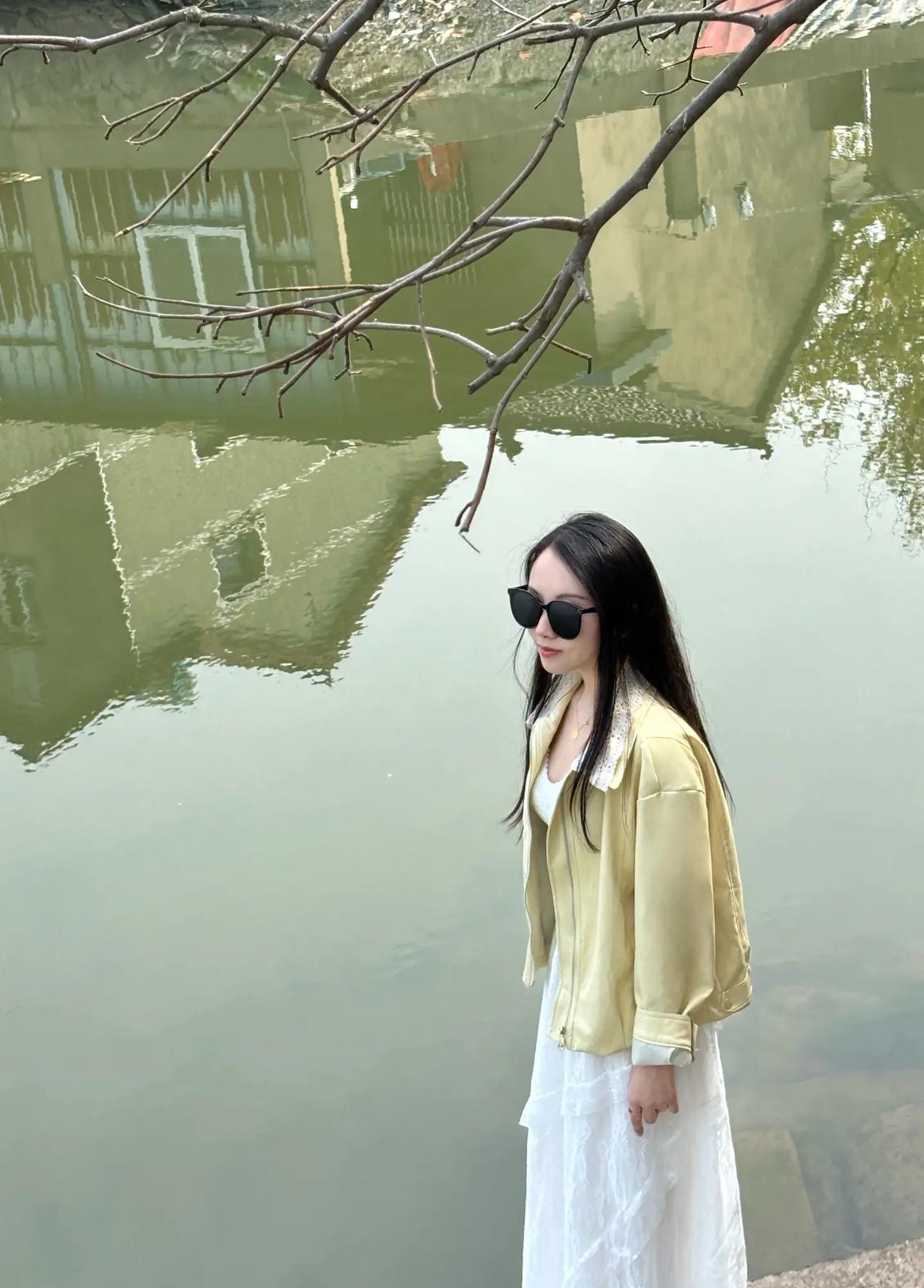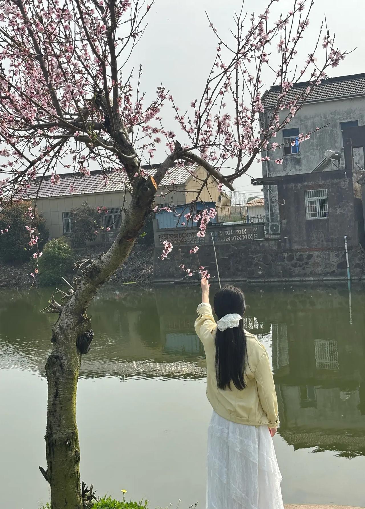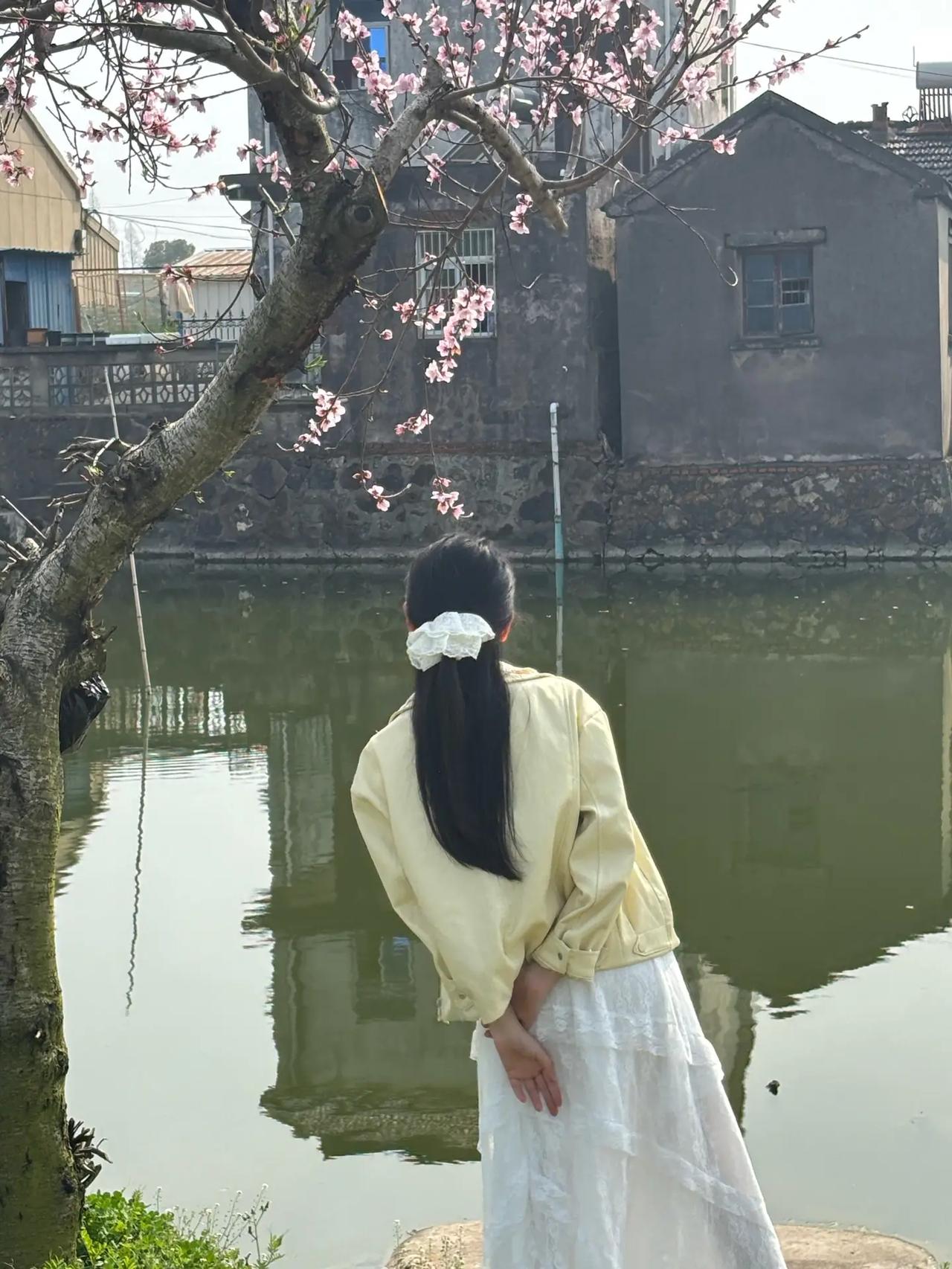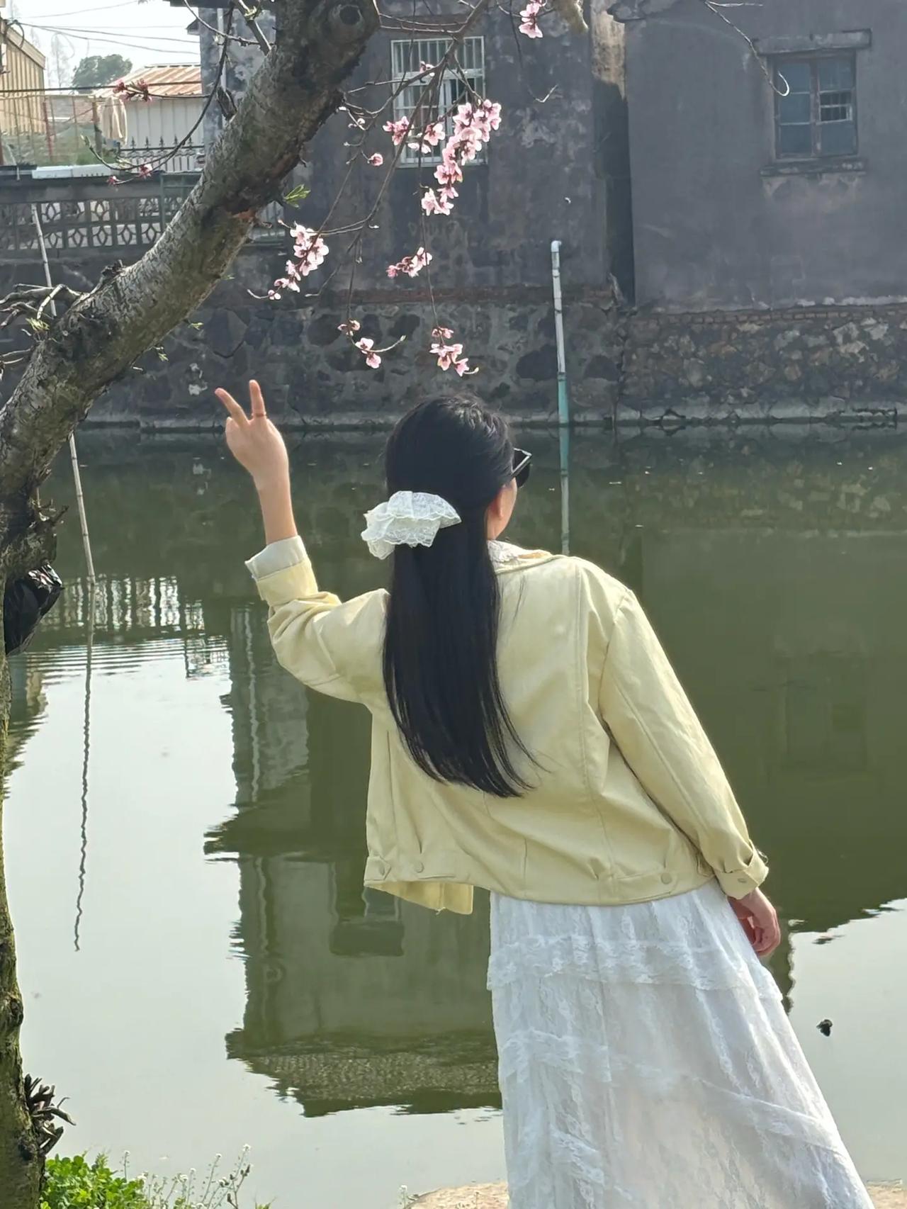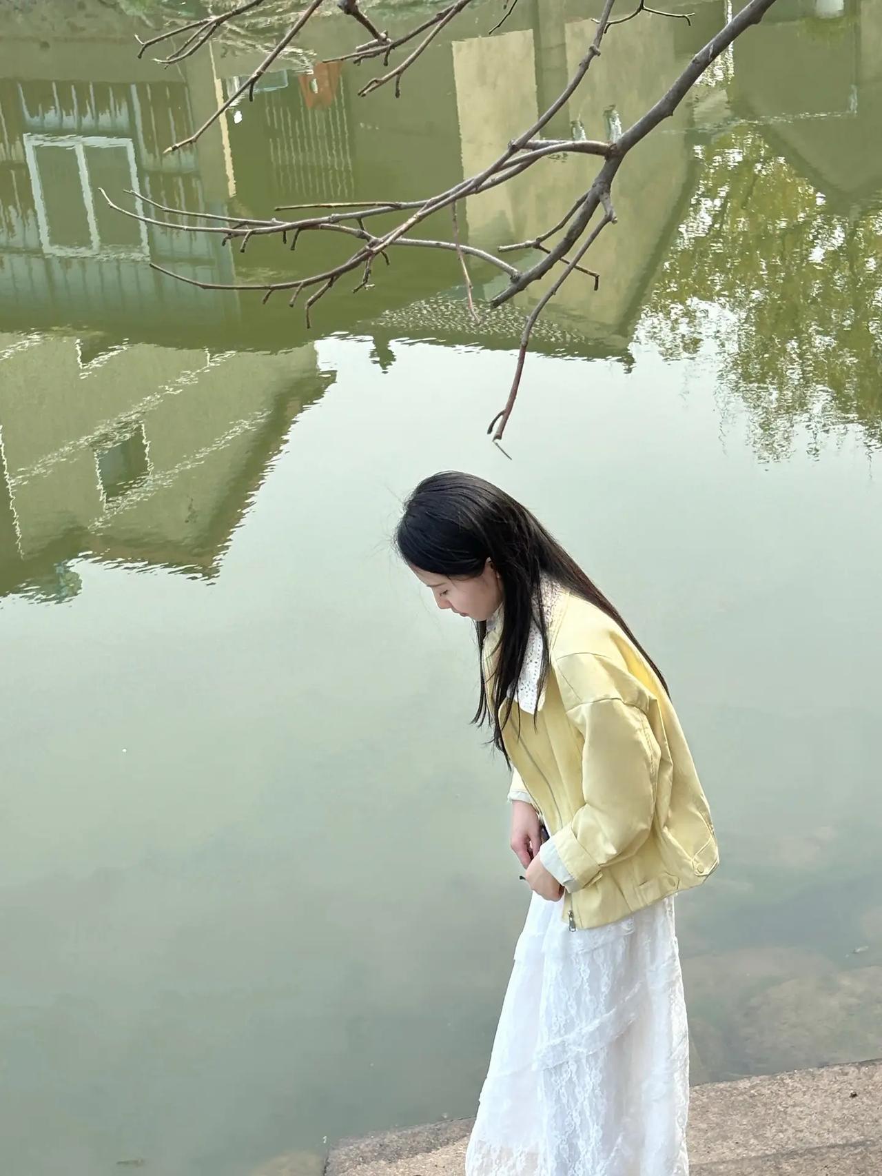 春日漫步,白裙飘飘,静享湖畔美景。