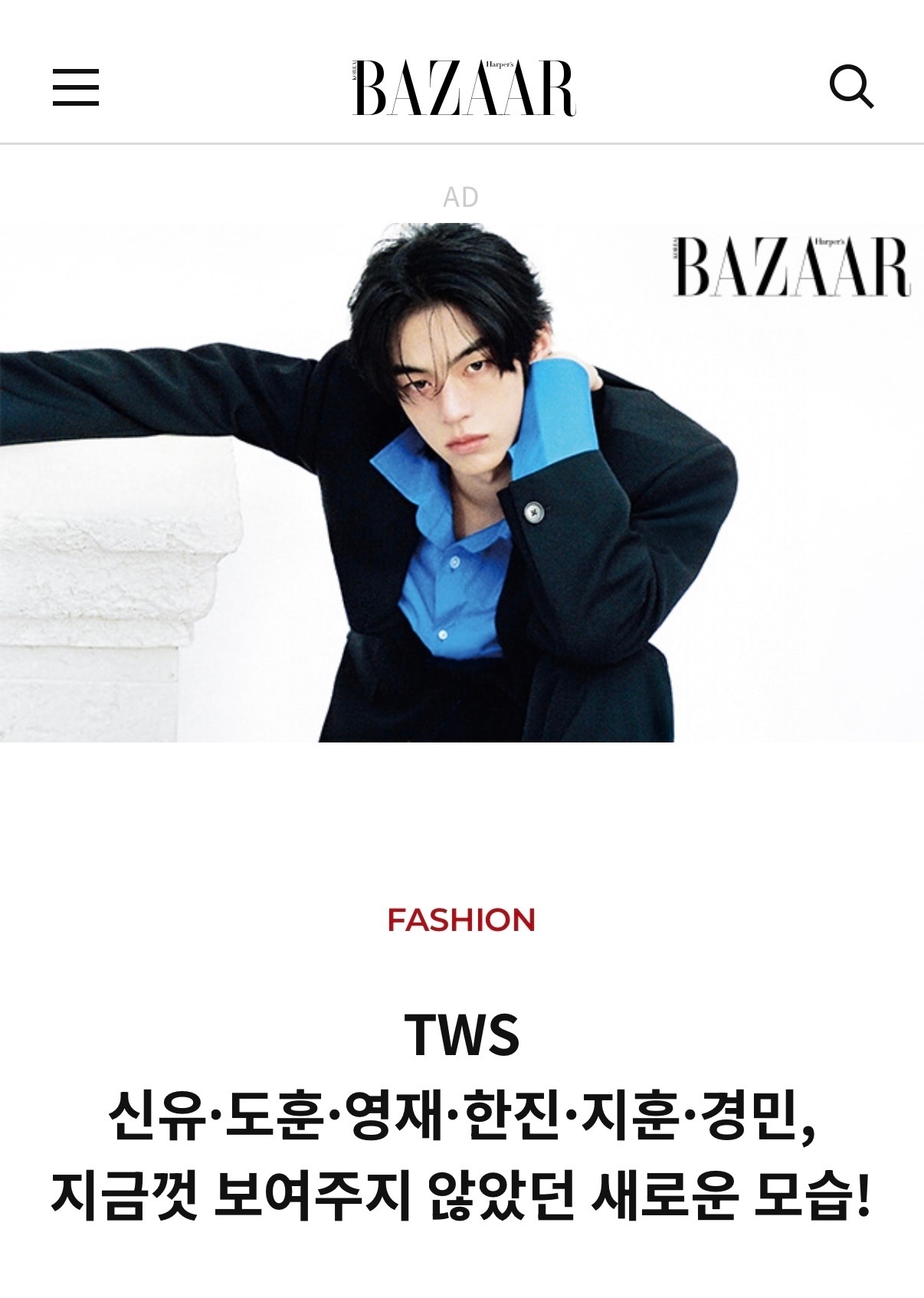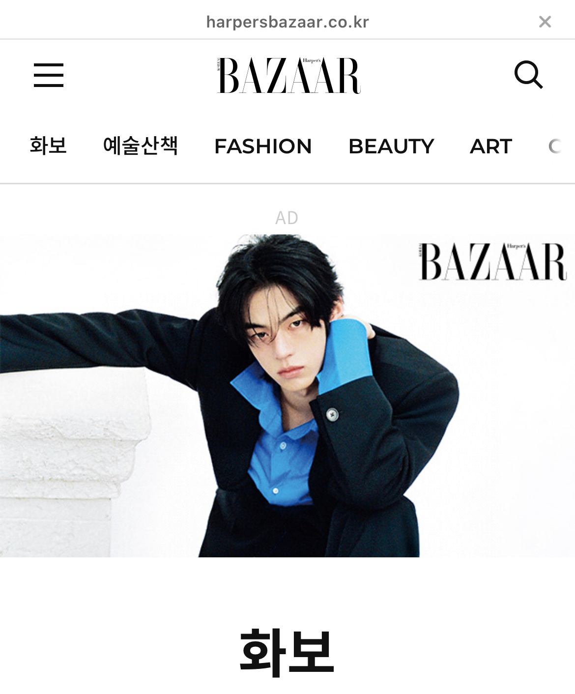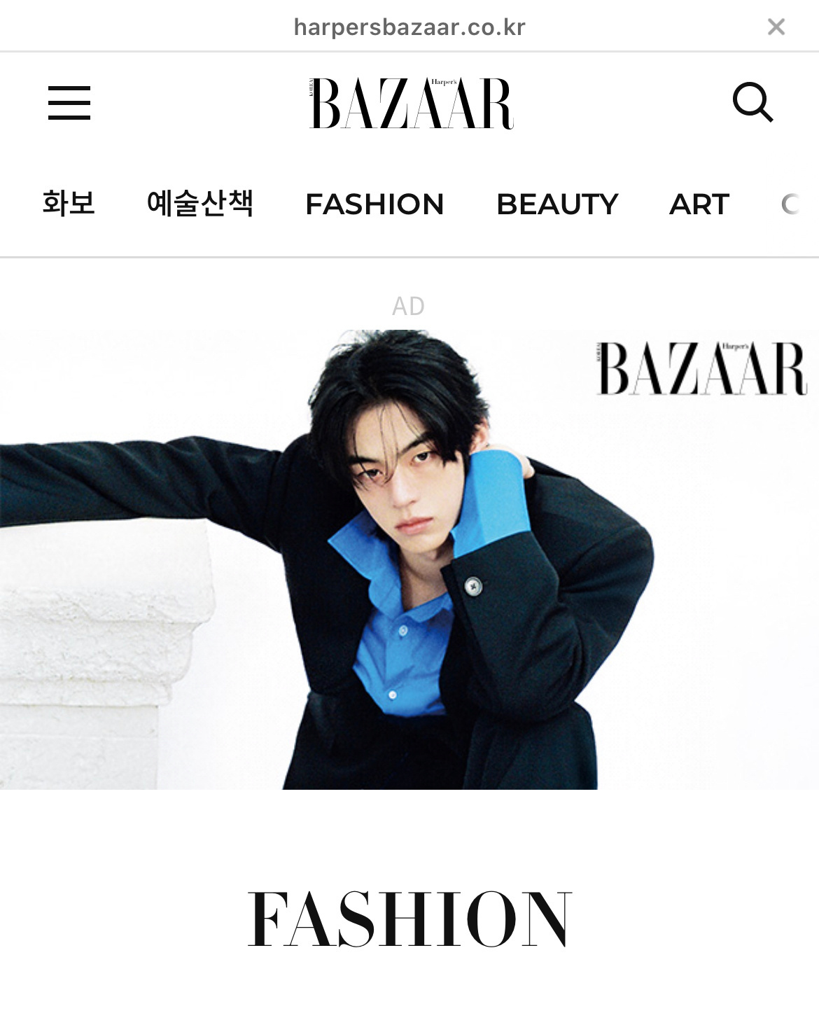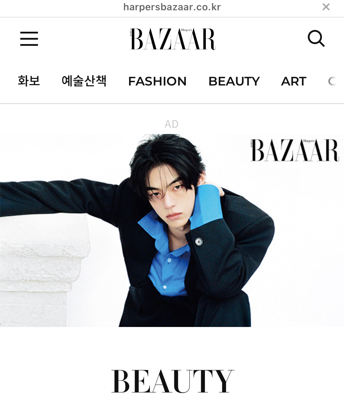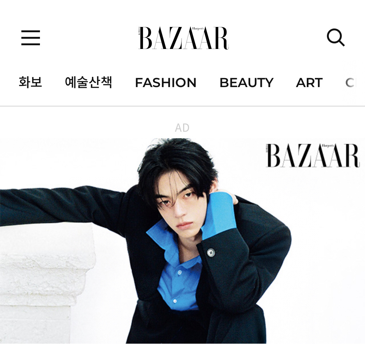 时尚芭莎KR官网将【官网首页】+【Fashion/Beauty/Celebrity/Art/芭莎封面/画报/TWS画报专栏】七个板块首图更换为金道勋单人画报,不愧是时尚宠儿doceline