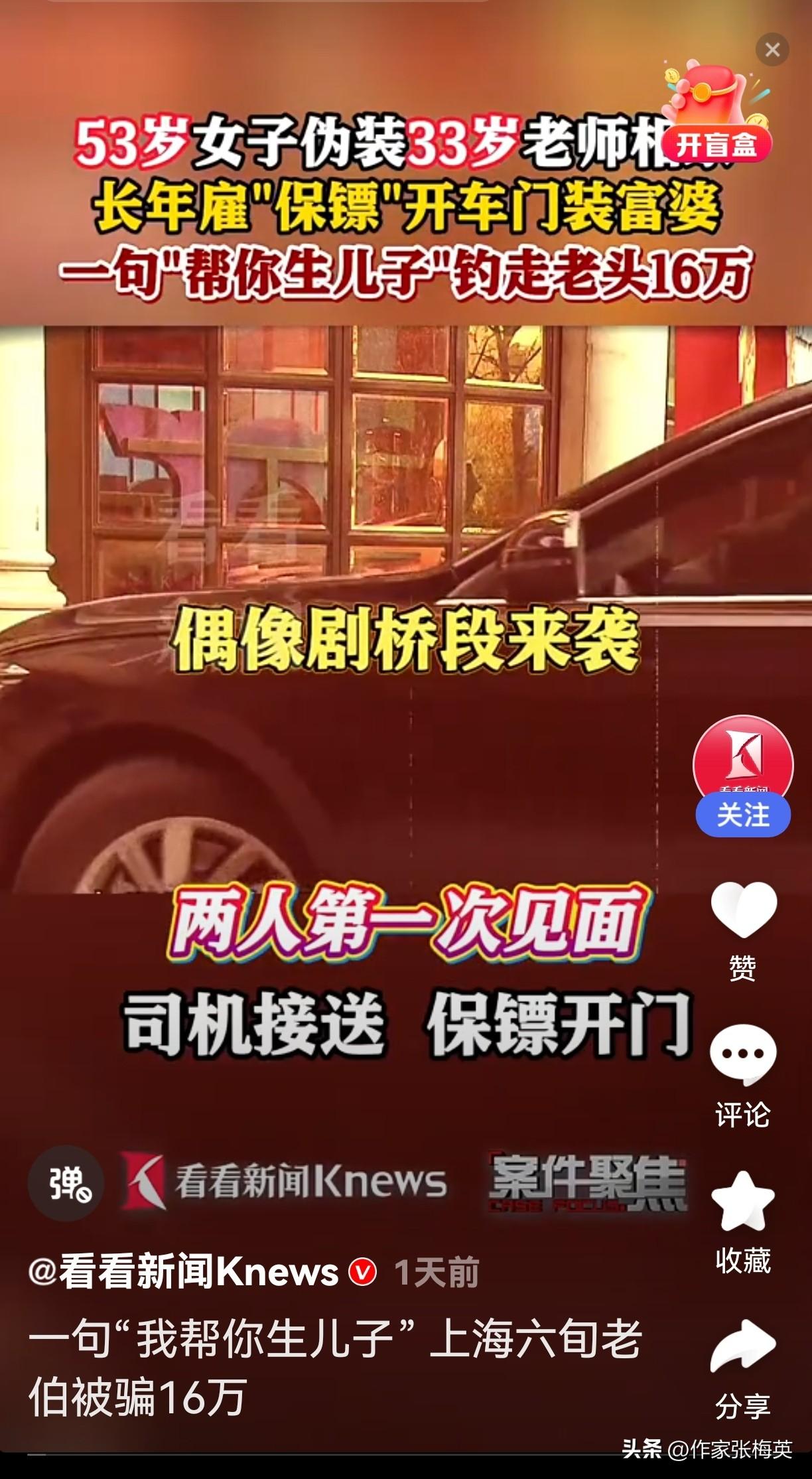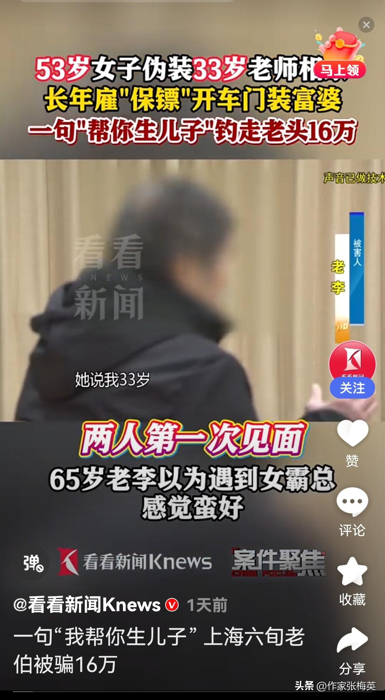 53岁假扮33岁富婆相亲,一句"我帮你生儿子"骗走上海独居老人16万 65岁老李独居上海,唯一的执念是从未有过孩子。相亲遇到"女霸总"陈梅——自称33岁音乐老师,保镖拉车门、豪车出行,气场十足。 第一次见面老李警觉:看着不像33岁。第二次约她带身份证,对方爽约,老李果断拉黑。 一个月后,电话响了:"我帮你生儿子。" 老李心动了。第三次约在KTV,他上个厕所回来,手机没了。第二天,银行卡被转走17万——密码123456,此前聊天还透露过有300万理财。 警方抓获"女霸总":真实身份53岁无业游民,保镖、司机全是雇的演员!专挑独居老人下手,精准狙击情感软肋。 目前赃款已追回,陈梅因涉嫌盗窃罪被逮捕。 --- 💬 网友评论: @反诈先锋:"密码123456,防住了自己,没防住骗子。独居老人的孤独,比密码更好破解。" @人间清醒:"53岁扮33岁,保镖司机全靠租,这投入产出比,骗子比打工人还拼。" @养老观察员:"一句'生儿子'值16万?不,值的是'家里没人了'的孤独。" @键盘侠007:"第二次见面查身份证,第三次见面就信生儿子。孤独让人降智。" @情感博主:"她骗的不是钱,是'被需要'的幻觉。他输的不是密码,是对亲情的渴望。" --- ✍️ 短评: 这是一场精心计算的狩猎。陈梅的"专业"令人心寒——保镖、人设、话术,全套流程瞄准独居老人的软肋。老李的"简单"同样叹息:密码123456是技术懒惰,被一句承诺击穿是情感崩塌。比诈骗更残忍的,是"家里没人了"成为可被利用的弱点。骗子终将伏法,但孤独不会消散——技术能追回赃款,唯有陪伴能修补人心。 养老诈骗 独居老人 相亲骗局 上海
