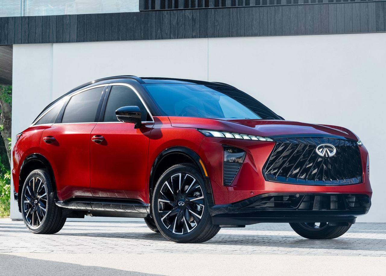近日,英菲尼迪官方发布了QX65的官图,新车延续了英菲尼迪家族式的设计风格,特别是前格栅的造型,尺寸不小巨有视觉张力,两侧采用分体式灯组,日行灯的样式也非常激进和有特点。另外可以看到新车采用了轿跑SUV风格的造型,双拼色的设计也极具运动感。尾部的设计跟领克Z20的设计有点异曲同工之妙,大家觉得呢? 座舱则是正常的家族式设计,黑红的配色进一步强化了运动属性,大面积的皮质包裹增加了豪华感,中控台配备小巧精致的12.3英寸悬浮式中控屏,支持谷歌应用系统。 动力方面,其搭载了2.0T涡轮增压发动机,最大功率272马力(200千瓦),最大扭矩387牛·米,与之匹配的是9AT变速箱,并提供四驱系统。【来自懂车帝车友圈】