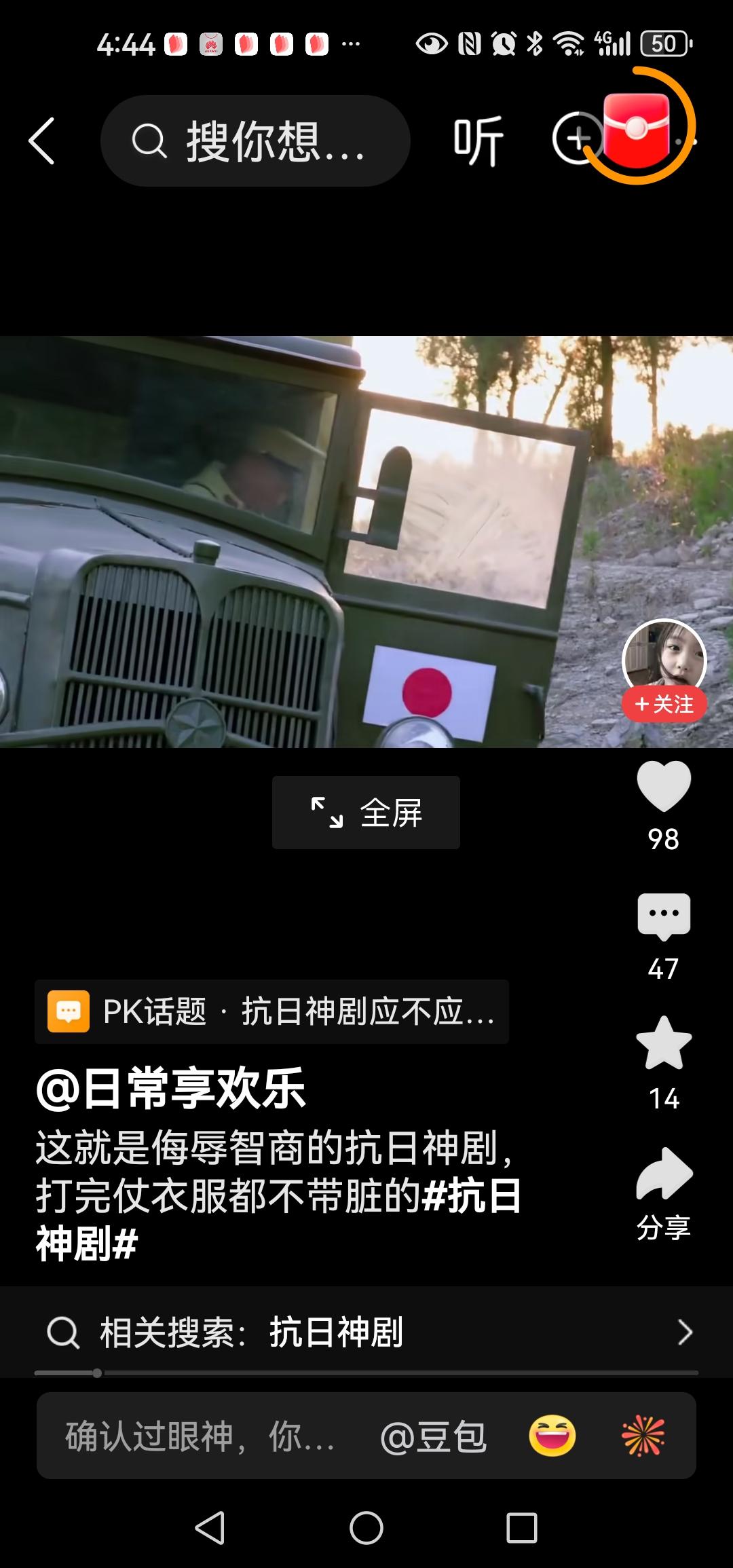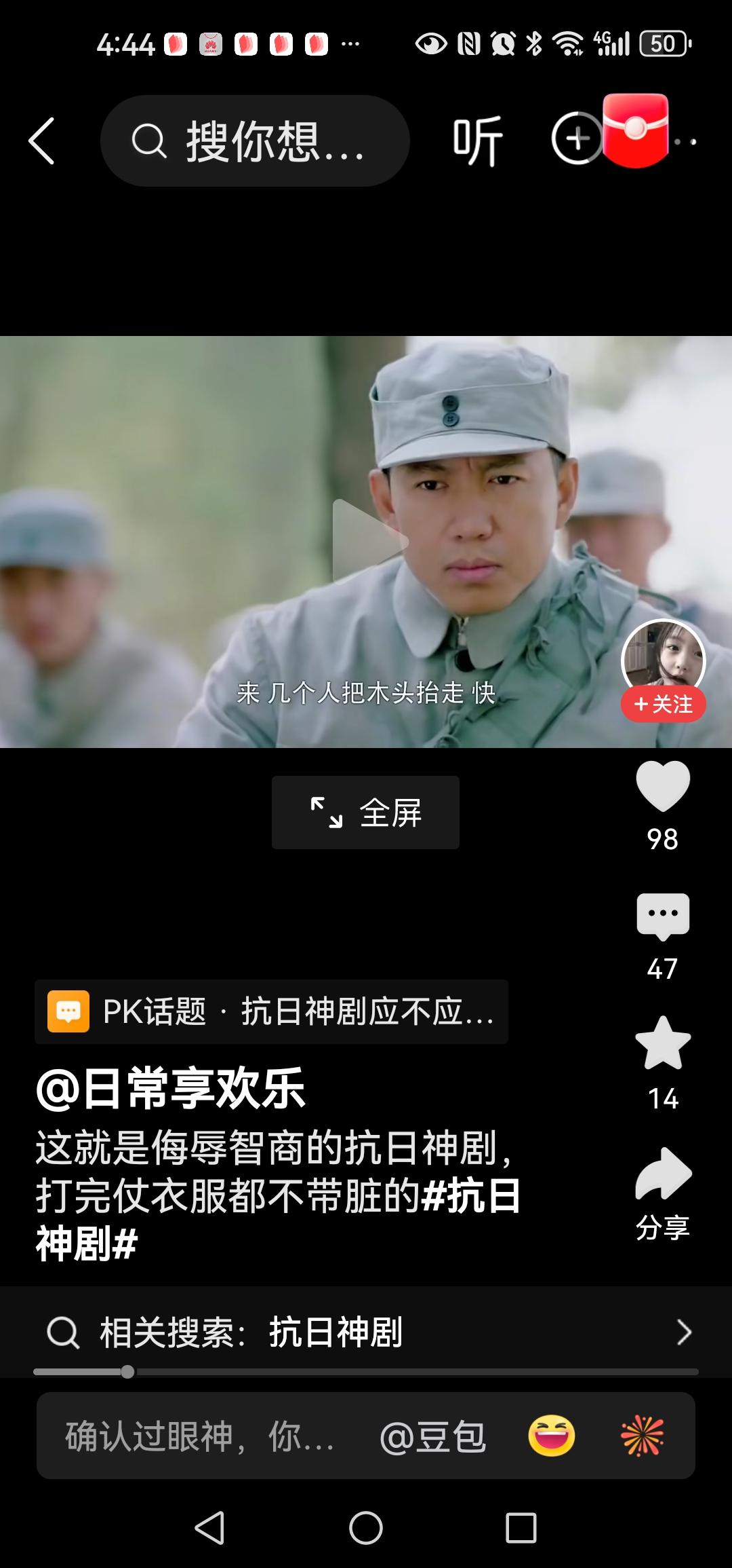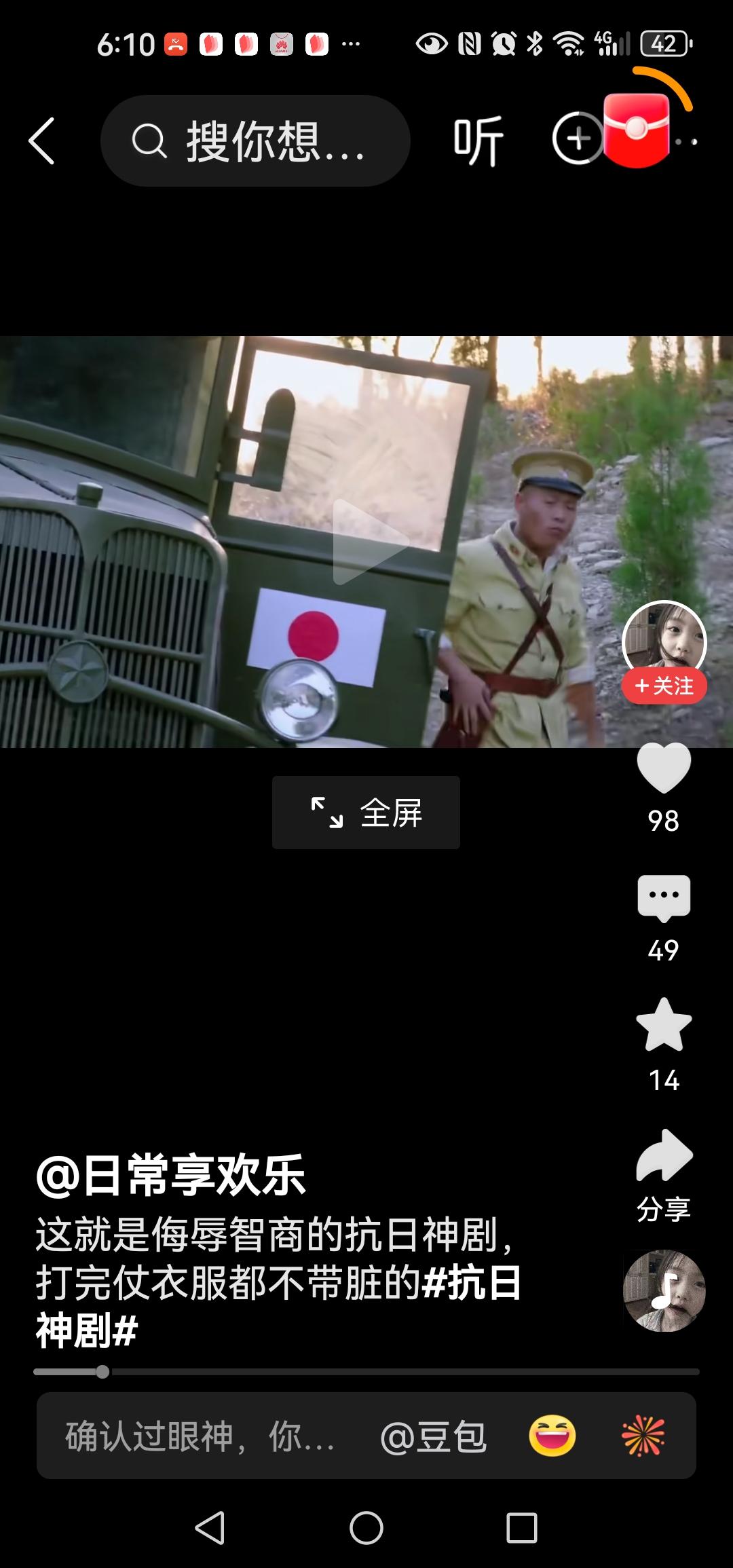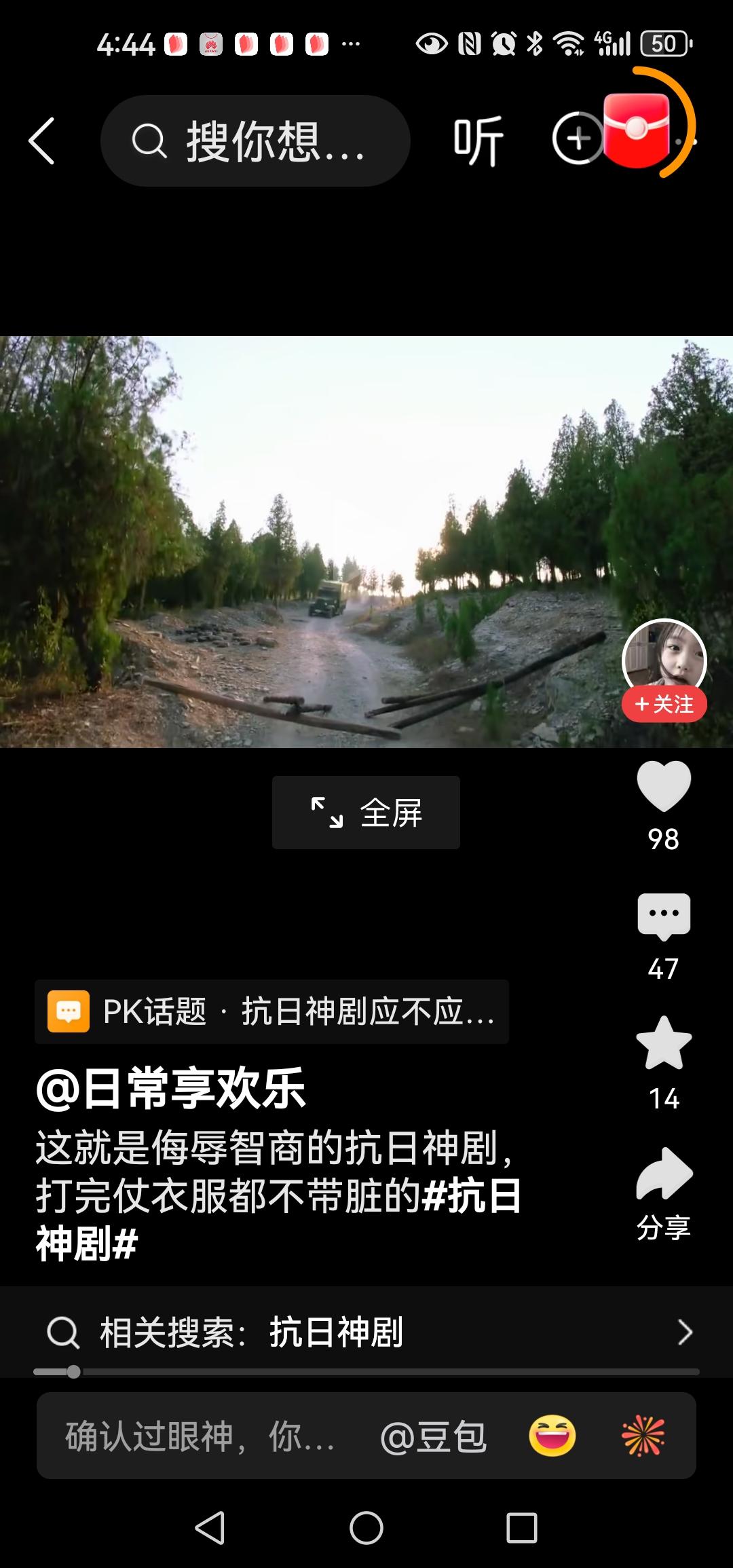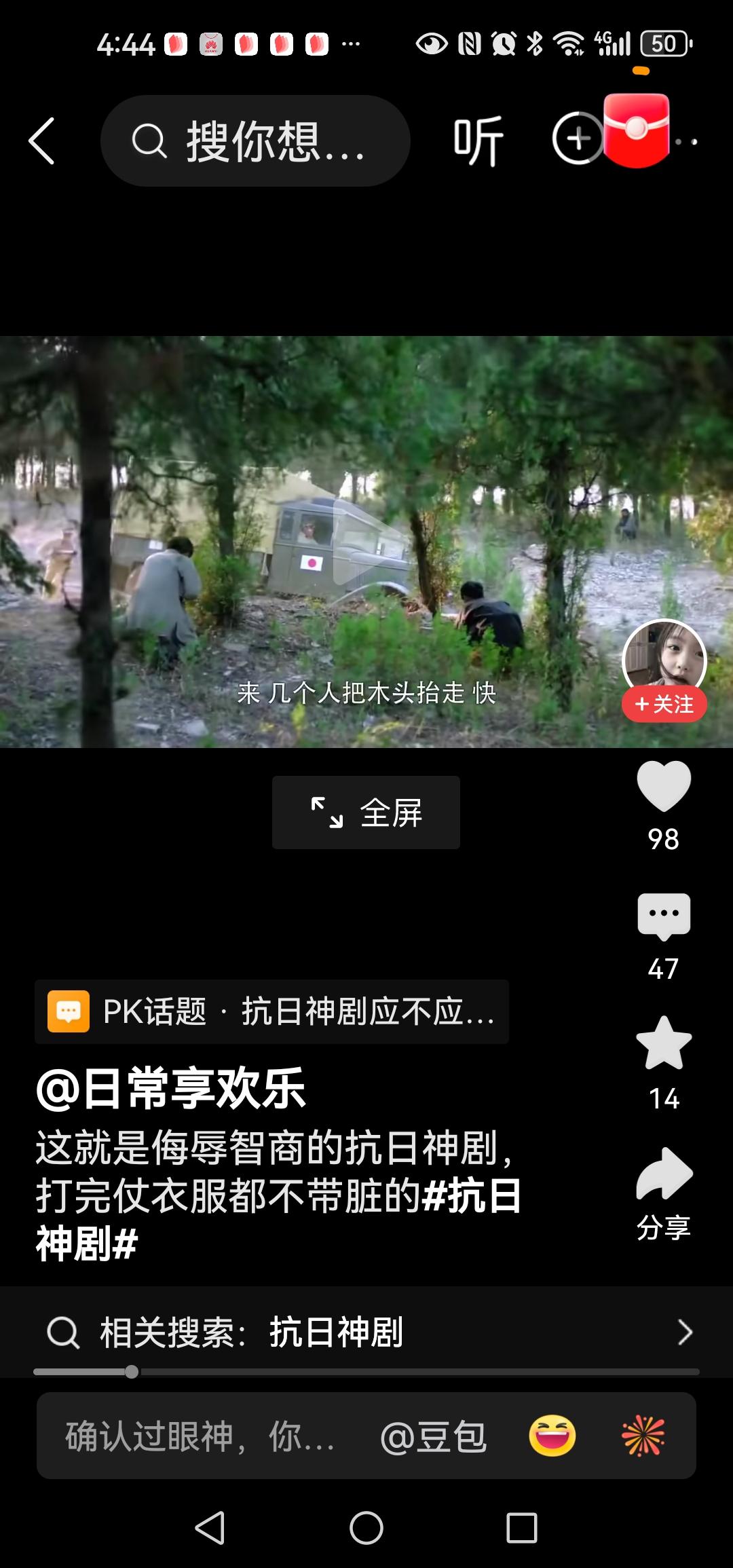 这回咱换个玩法,好不好,听到没,他们把打仗当个玩呢,这次到底又要咋个玩呢?啊,是在路上放两条小树枝,意不意外,玩呐,哈哈笑死,原来螳臂真的可以挡车呀? 一个黄军打开车们走下.来,一脸疑惑,喊道来几个人把木头抬走,他把树枝叫木头啊还来几个人?用脚一踢就可飞出几丈,还来几个人抬?他傻也当我们傻? 警匪片中,人家歹徒看见一卡车挡道还大喊冲冲,冲过去,几条树枝你也停车下来,等八路军灭你,真是该死。 导演啊,下次弄大点的树枝吗?行不,把鬼子当傻子了,把观众也当傻子了。