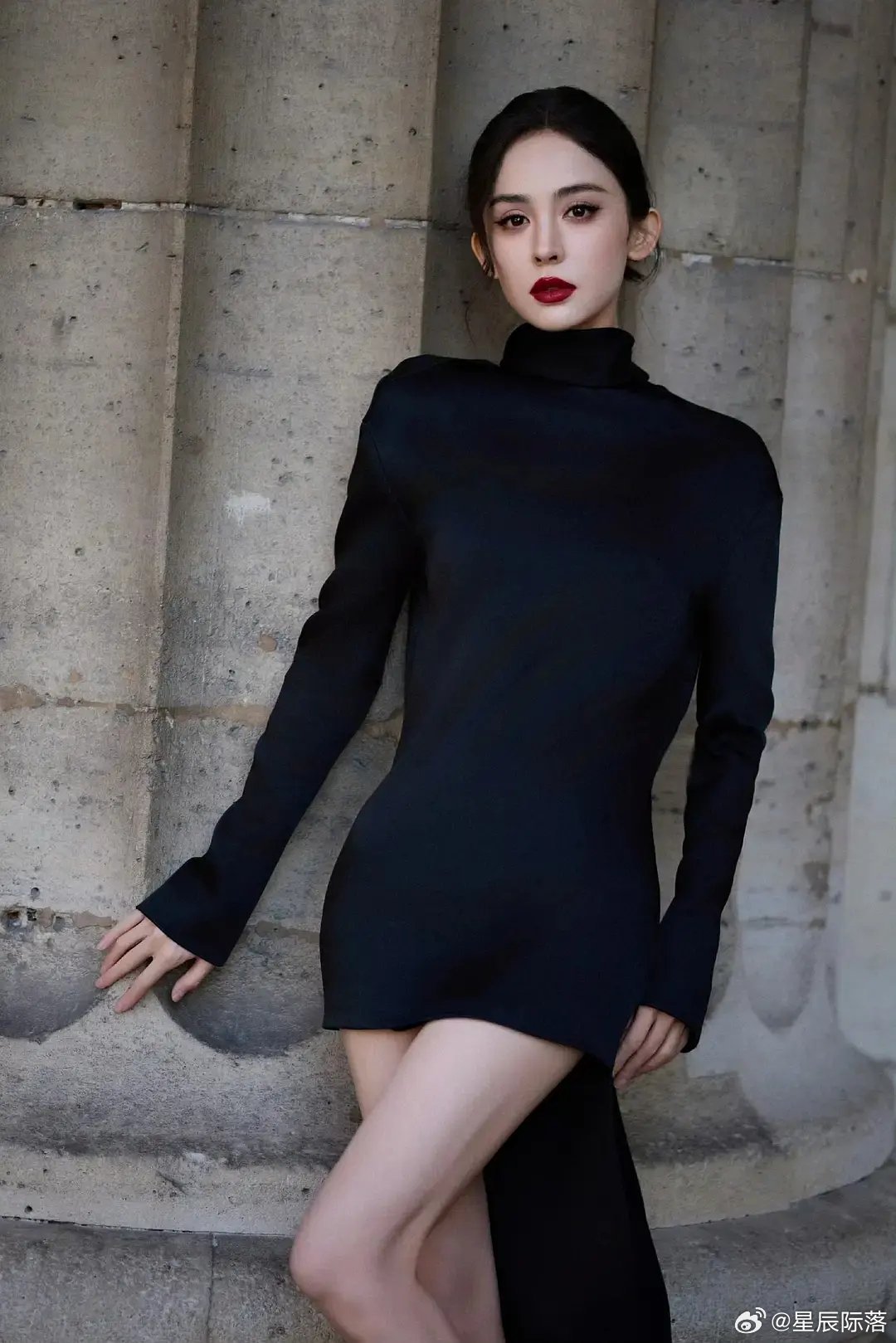 古力娜扎:红唇皮裙,暗夜女王。娜扎
