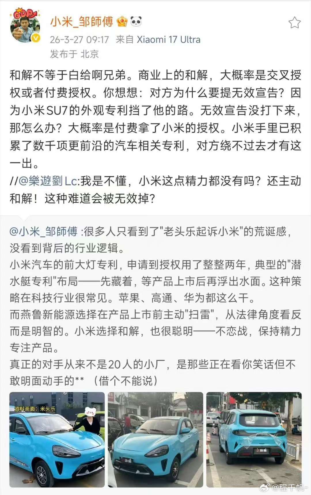 老头乐向小米汽车致歉 这个事情明眼人一看就知道是怎么回事,我给没看过的大伙讲一下,小米还是太厚道了