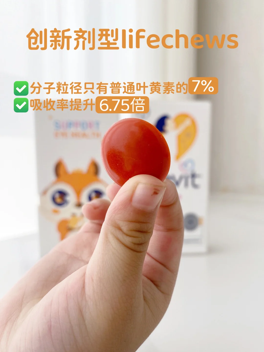 关键是它用了创新剂型Lifechews,把叶黄素分子切到和母乳微粒一样大,吸收率直接提高了6.75倍