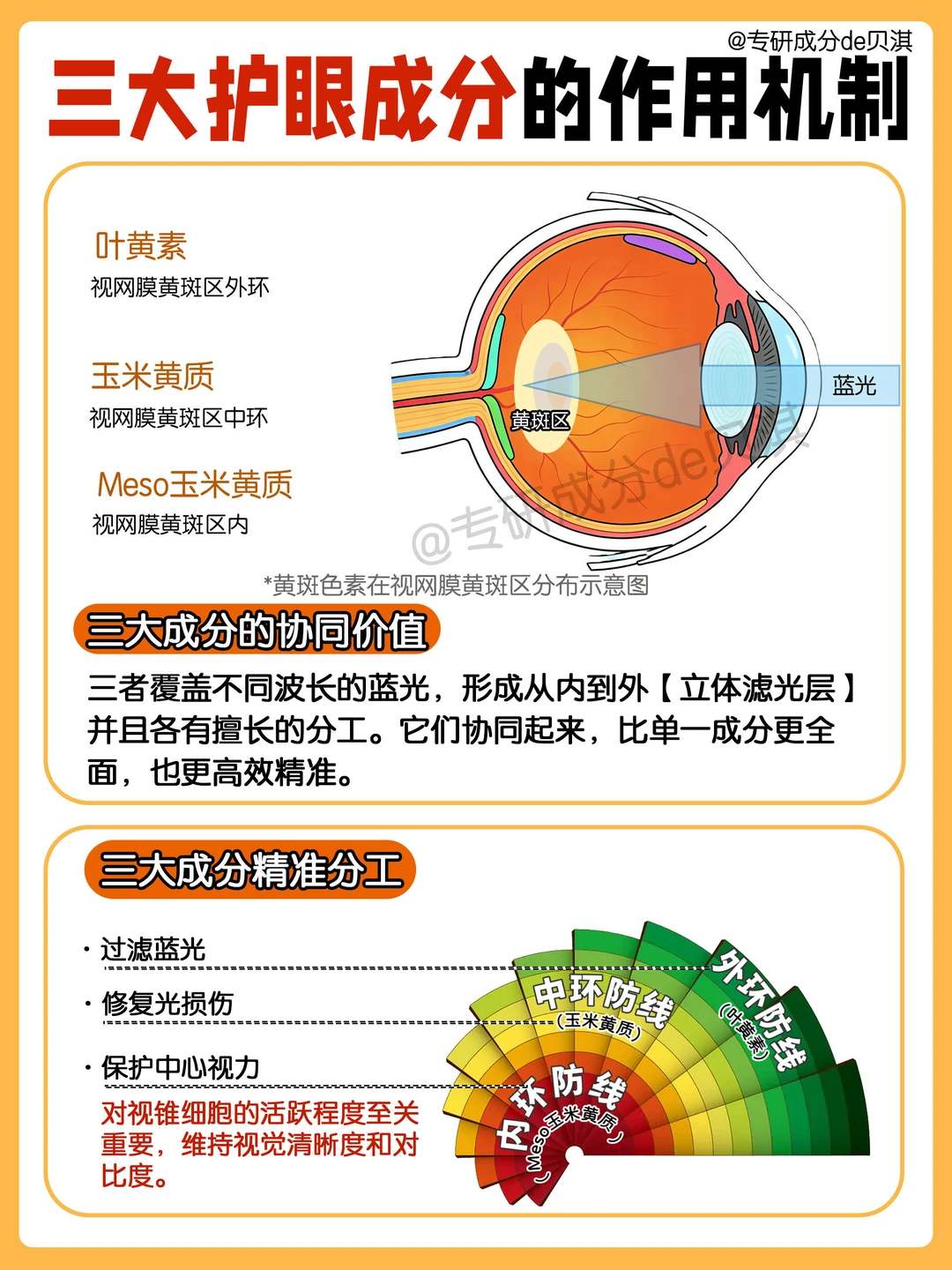 但单打独斗还不够,真正的有效护眼,需要三种成分接力守护