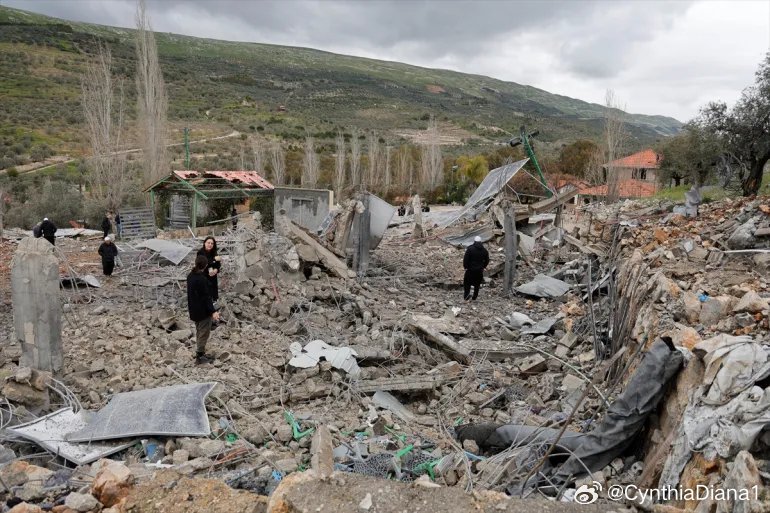 图1 人们周四检查黎巴嫩南部哈斯拜亚地区一个德鲁兹村庄被以色列军队袭击后被毁的房屋【拉米兹·达拉/安纳托卢】
