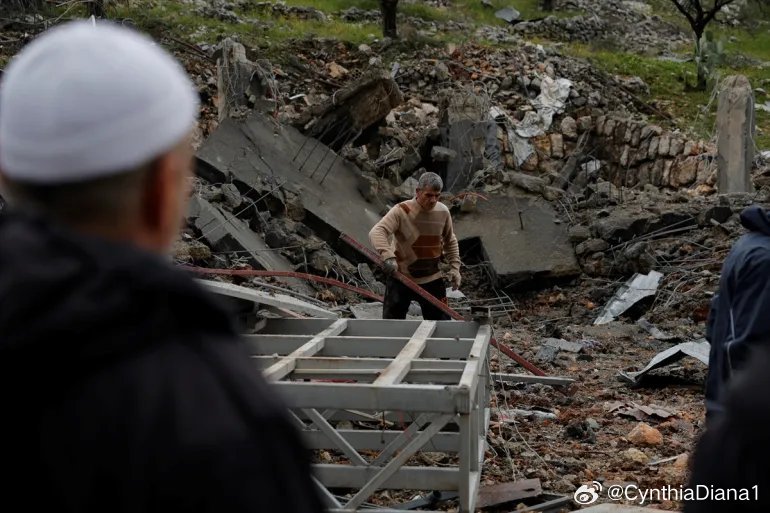 照片:德鲁兹村居民在以色列袭击黎巴嫩后检查破坏情况