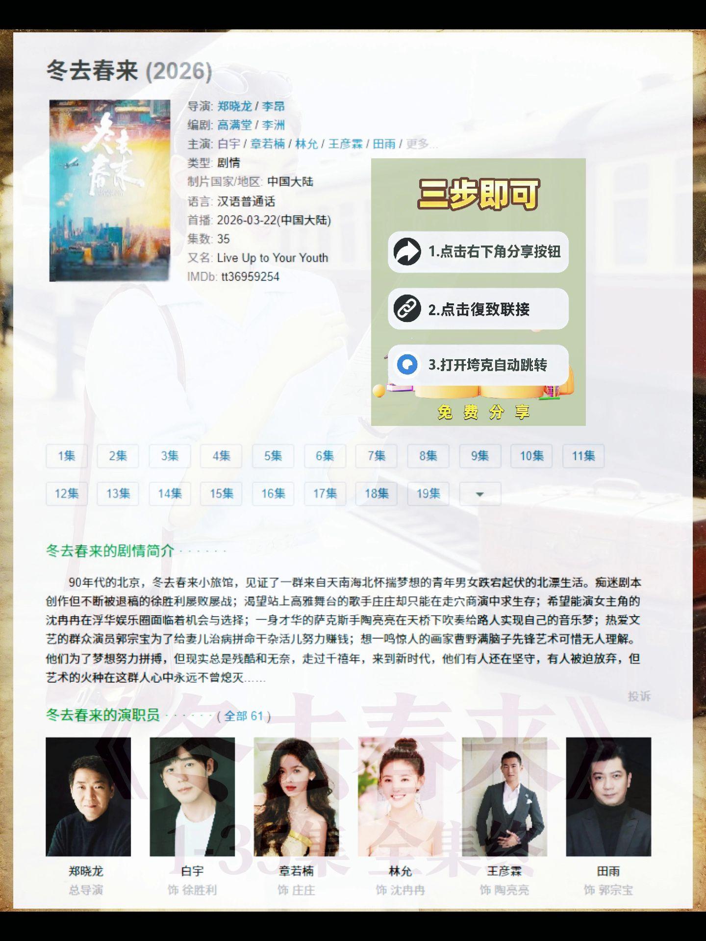 伏脂晑稳乕爨癵洞座《冬去春来》1-32集说实话,很久没看到这么走心的剧了,真心推荐冬去春来 冬去春来开播 章若楠 白宇 徐胜利 冬去春来追剧日历 冬去春来好看吗冬去春来在哪看 冬去春来播完了吗 冬去春来在哪看完结冬去春来在哪看大结局 冬去春来完结了冬去春来全集终 冬去春来什么时候结局冬去春来大结局怎么样