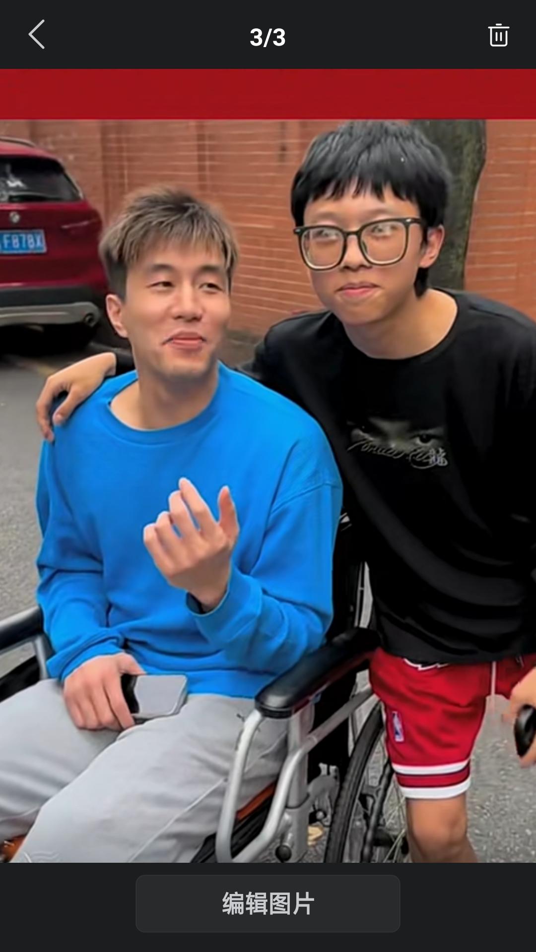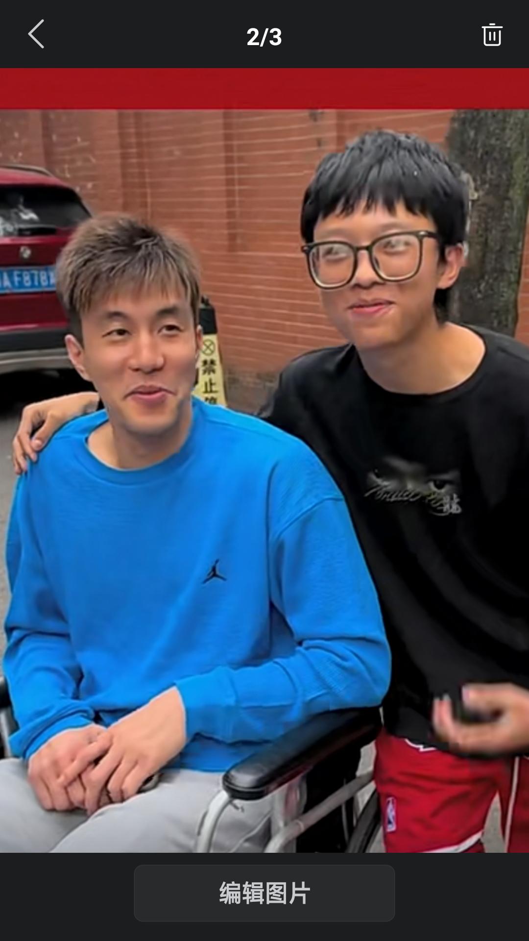 【郭艾伦术后重返广州,坐在轮椅上与球迷合影,脸上露出难得的笑容,依旧是那个阳光,帅气的大男孩啊!】