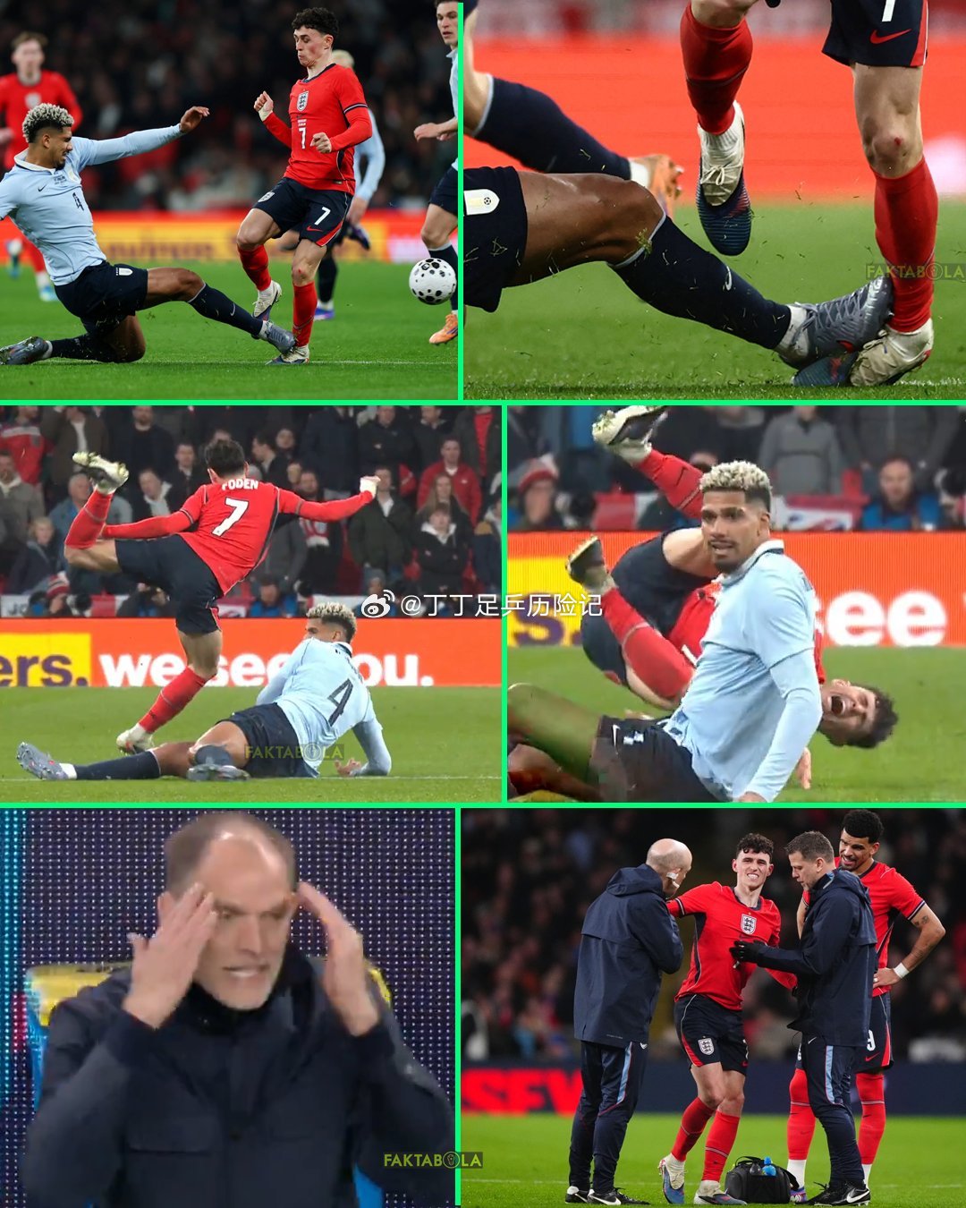 英格兰1比1乌拉圭英格兰队友谊热身赛英格兰对阵乌拉圭的第 50 分钟,阿劳霍对福登完成一次凶狠放铲。没过多久,福登便被换下离场。场边的图赫尔面露愠怒,满脸气愤与不满。赛后马奎尔直言:“这样的犯规动作本该直红罚下。距离世界杯仅剩数月之久,裁判却纵容这种恶劣放铲…… 实在令人倍感失望。”