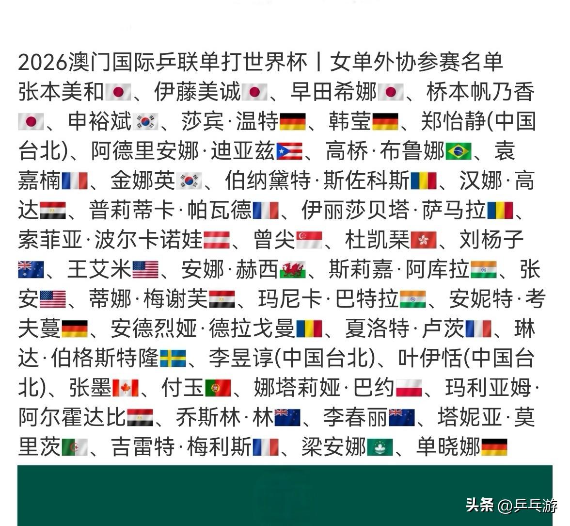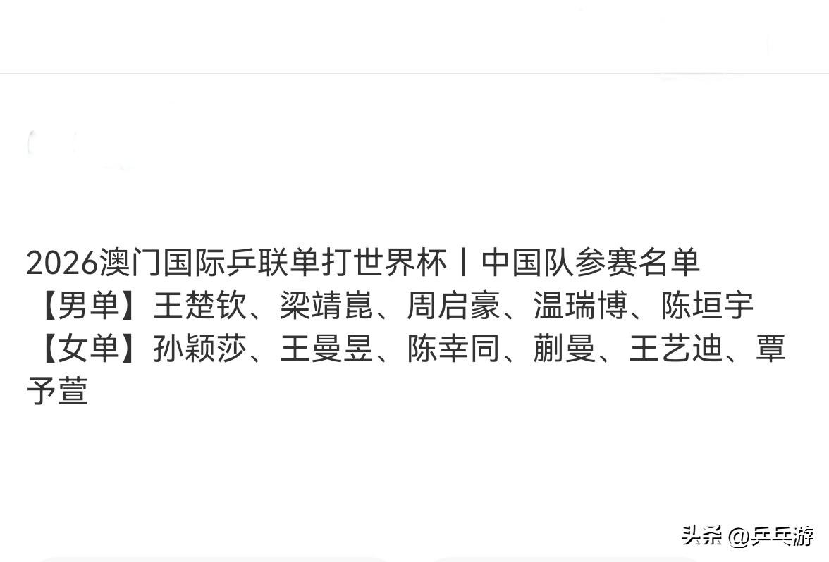 🏓近日有球迷希望王曼昱在世界杯能再遇大藤沙月,以“复”重庆站之“仇”。想啥呢?这完全没可能呀! ~~~~~~~~~~ 我说这“没可能”还有人跟我抬杠,说我瞧不起王曼昱,说我高看大藤。 大藤沙月都没获得世界杯参赛资格,咋相遇?咋FC? 世界杯同协会限4名选手参赛,报名时大藤在日乒的排名是第五,哪来的参赛资格呢?! ~~~~~~~~~~~~ (网图侵删)
