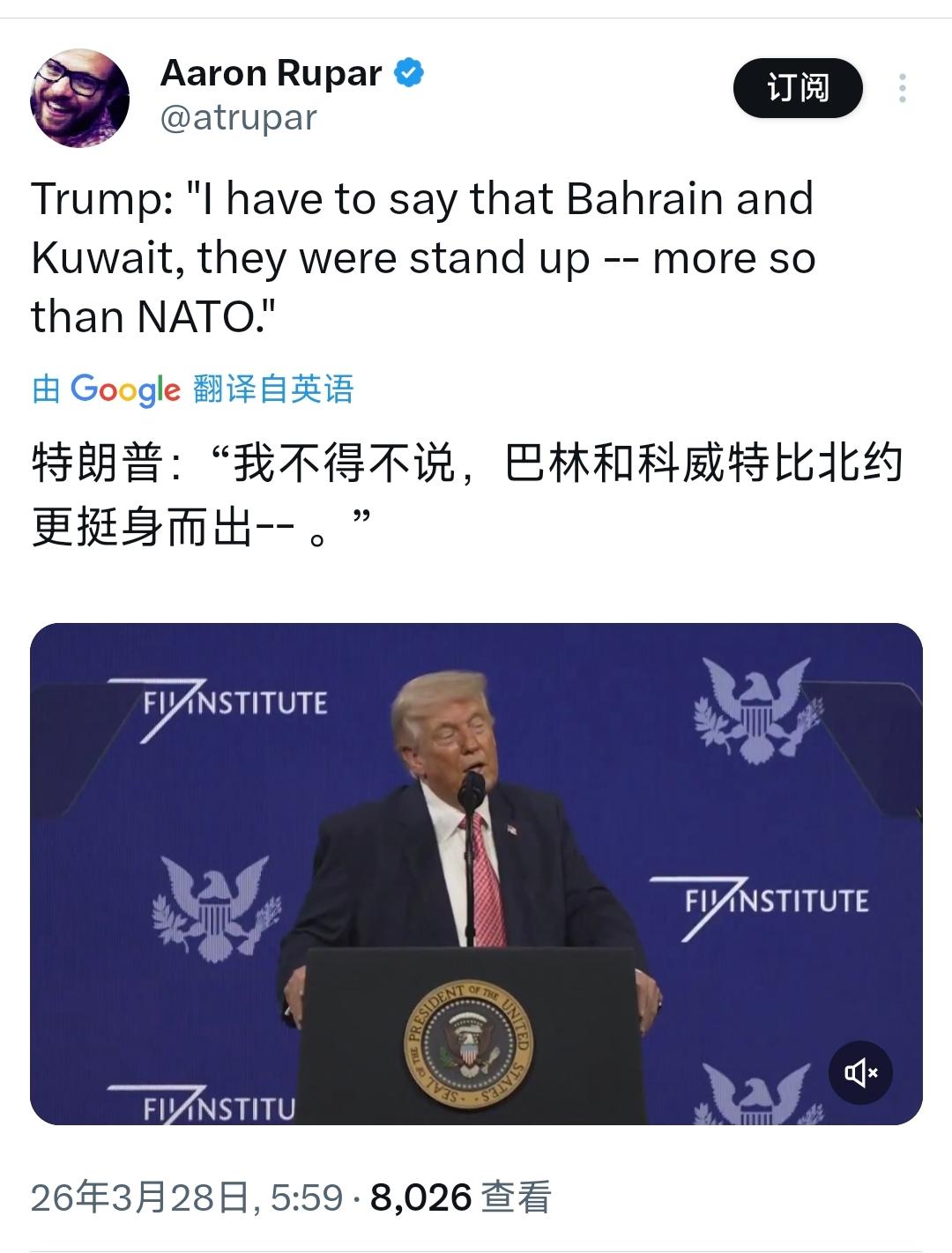 特朗普北京时间3月28日在演讲中表示:“如果发生大地震,我敢保证北约不会在那里。我要感谢整个沙特阿拉伯王国。你们非常乐于助人,不像北约那样。我不得不说,巴林和科威特比北约更挺身而出。” 特朗普他向来就不把盟友当回事,在他眼里,盟友就是用来利用的棋子,有用的时候就拼命捧,没用的时候就一脚踩开,所谓的同盟关系,根本不是互相扶持,而是必须唯美国马首是瞻的交易,你帮我做事,我就给你好脸色,你不配合,我就直接拆你的台、说你的坏话。 特朗普说北约“大地震时不会在那里”,可不是随口乱编,背后全是他的不满和算计。最近一段时间,美国和以色列一起对伊朗发动了军事打击,到现在已经快一个月了,美军在中东的行动并不顺利,还想让北约盟友过来帮忙,一起在霍尔木兹海峡搞护航行动,毕竟这条海峡是全球能源要道,对美国来说至关重要。 可让特朗普没想到的是,北约的那些盟友,像德国、法国、英国这些平时跟美国走得近的国家,没一个真心愿意帮忙的。 德国总理默茨甚至直接抱怨,美国从来没有提前跟北约盟友沟通,都是发动打击后才通过媒体喊话要支持,这种做法让人无法接受,还明确说,围绕伊朗的局势不是“北约的战争”,不愿意为美国挑起的祸事买单。意大利、西班牙更是干脆,找了一堆借口推脱,压根就不打算参与。 这可把特朗普气坏了,他觉得美国每年花数千亿美元保护北约盟友,平时不管什么事,美国都冲在前面帮他们,可现在美国需要帮忙了,这些盟友却一个个缩在后面,太不给面子了。 所以他才在演讲中故意踩北约,说就算发生大地震,北约也不会来帮忙,其实就是在发泄不满,意思就是“我平时帮你们,你们现在不帮我,以后也别想我再真心帮你们”。 而他转头就感谢沙特、巴林、科威特,也不是因为这几个国家多仗义,而是因为这几个国家最近帮了美国的大忙,对美国有用。 就在不久前,沙特的态度发生了大转变,不仅开放了境内的法赫德国王空军基地,允许美军战机从这里起飞,对伊朗境内的目标发动进攻,还放松了领空管控,给美军的军事行动提供全方位支持。 巴林和科威特也没闲着,最近中东局势紧张,伊朗的反击让这两个国家也感受到了安全压力,所以他们也主动向美国示好,配合美国的行动,不像北约那样敷衍推脱。 对特朗普来说,现在沙特、巴林、科威特能帮上美国的忙,能配合美国在中东的战略,就是有用的“棋子”,所以他才会在演讲中特意表扬他们,说他们“乐于助人”“比北约更挺身而出”,说白了就是想哄着这几个国家,让他们继续配合美国。 其实特朗普这种做法,早就不是第一次了。他之前就多次批评北约盟友,说他们花美国的钱、占美国的便宜,却不愿意增加军费,还威胁说要缩减对北约的保护开支,甚至要退出北约。 2024年他竞选总统的时候,就没少吐槽北约军费的问题,觉得美国在北约里花的钱太多,欧洲盟友就是在免费搭美国的安全便车。 更明显的是,他对盟友的态度,完全看对方对美国有没有用。以前北约能帮美国制衡欧洲、打压俄罗斯,特朗普就还能勉强维持表面的同盟关系;现在北约不配合美国在中东的行动,对美国没用了,他就直接撕破脸,公开贬低北约。 而沙特、巴林、科威特现在能帮美国在中东打压伊朗,对美国有用,他就立马笑脸相迎,拼命夸赞。 说来说去,特朗普心里只有美国的利益,所谓的盟友,在他眼里根本不是伙伴,只是他实现自己利益的工具。有用的时候,他就捧你、夸你,把你说得天花乱坠;没用的时候,他就踩你、骂你,把你弃之如敝履。 他把同盟关系彻底变成了交易,只要你听美国的、帮美国做事,美国就会给你好处;一旦你不配合,美国就会毫不犹豫地抛弃你,甚至反过来打压你。 这次的演讲,就是最真实的体现。特朗普一边骂北约靠不住,一边夸沙特等国乐于助人,看似是在评价不同盟友的态度,实际上就是在给所有盟友传递一个信号:你们必须听我的,必须帮美国做事,不然我就不会再把你们当盟友,甚至会公开拆你们的台。 其实不光是这次,特朗普执政以来,一直都是这么做的。他不管什么同盟情谊,只看利益得失,把盟友当成棋子,有用就留着,没用就扔掉。 这种做法,也让美国的很多盟友心里都没底,就连英国这样的铁杆盟友,最近也开始硬刚美国,要求美军撤离英国并结清拖欠的基地租金。 说到底,特朗普的这番话,没有什么真情实感,全是利益算计。他不是在感谢沙特等国,也不是真的在指责北约,只是在维护美国的利益,只是在告诉所有盟友:想跟美国做盟友,就得唯美国马首是瞻,就得帮美国做事,否则,就算是北约这样的老牌同盟,也会被他弃之不顾。