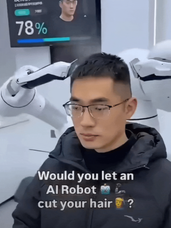 深圳的街头正在推广一种理发亭,3块钱一次,全程不用人,这够便宜了吧。这种理发亭会用机械臂先给脑袋做3D扫描,AI看脸型、看发质,几分钟搞定,精度能到毫米级。据说发型库里存着几千种样式,客人可以随意选择适合自己的样式。 现在,无人驾驶出租车让司机们慌了神,这回轮到托尼老师了。以前理发还得跟师傅“沟通半天”,现在直接选个模板,机器比人还稳当。 价格低成这样,不光是抢生意的问题——这种碾压式效率,估计用不了多久,满大街都是机器人给你剪头发了。