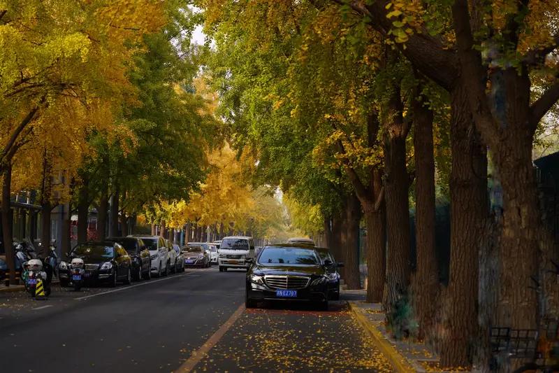 北京的秋天,那壮观景象简直绝了!就说北京中山公园,银杏林和银杏大道在金色晚霞的映