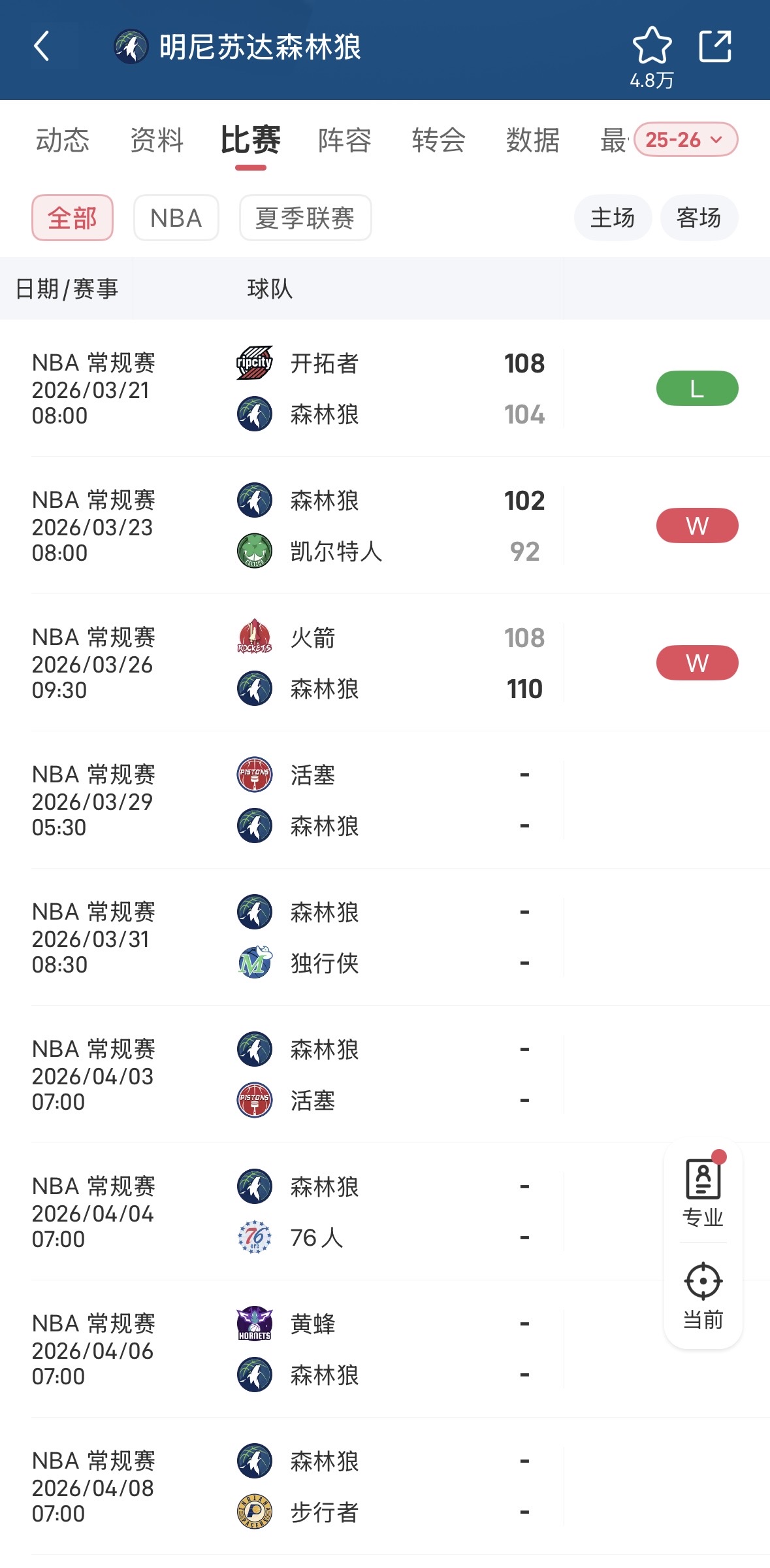 • 预测:5-3或4-4,稳第3概率大,但连输2场就可能被掘金反超