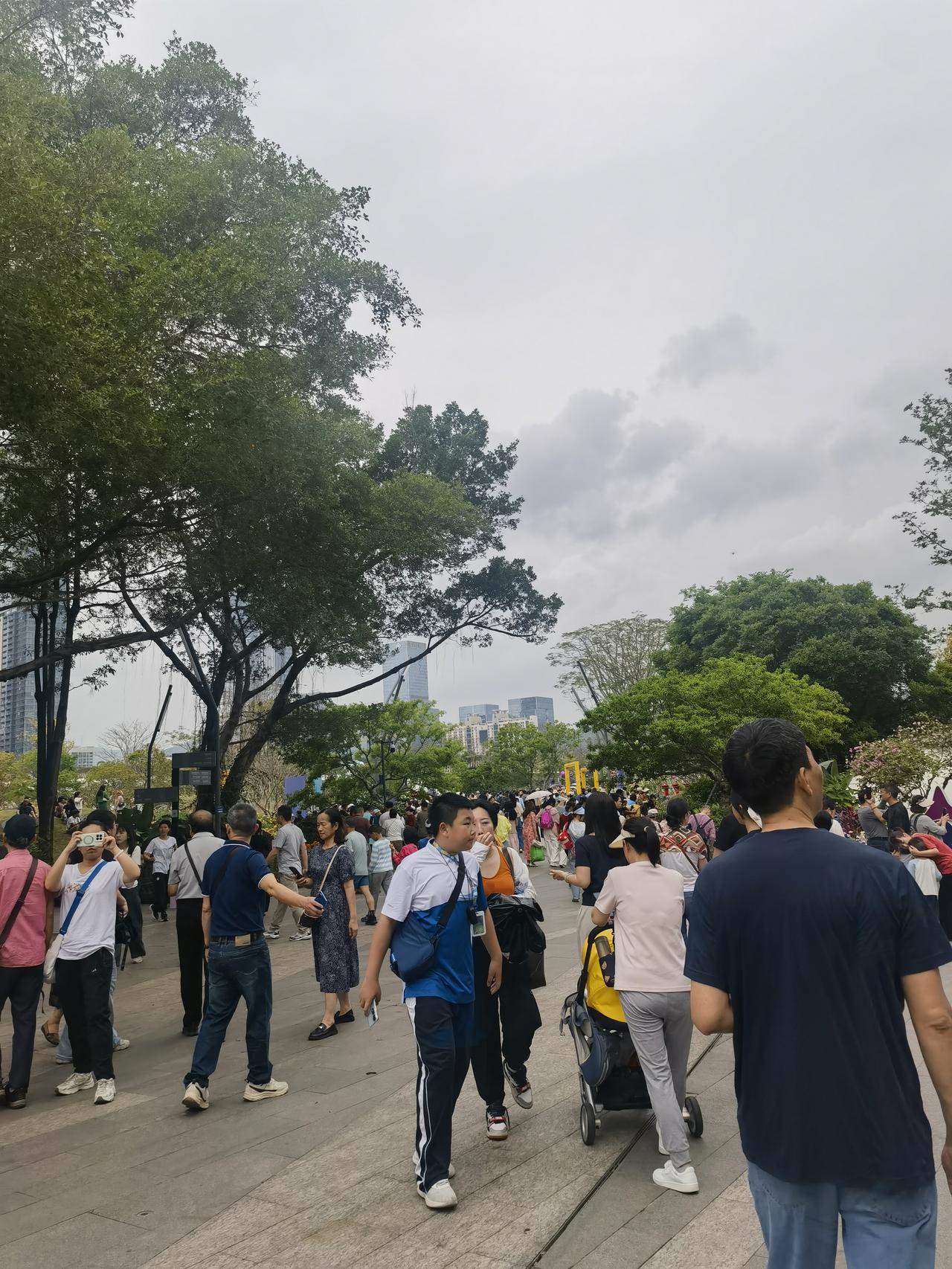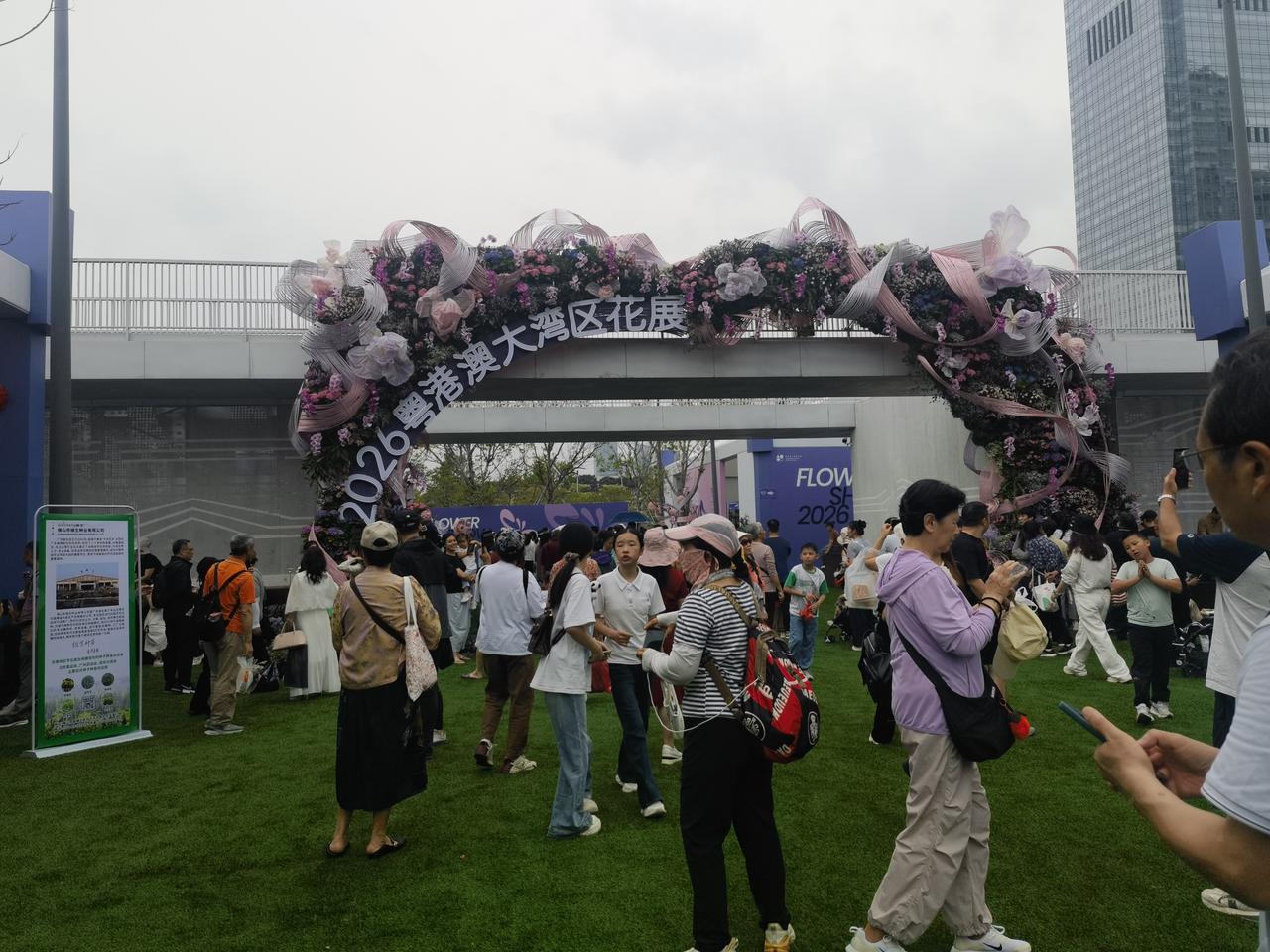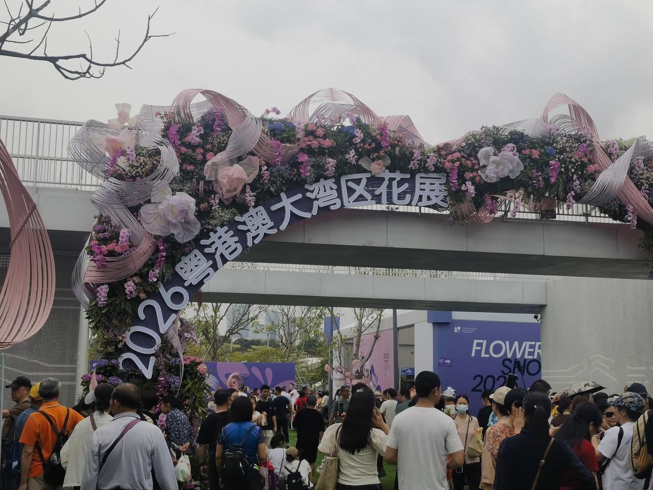 今天是星期天,深圳笔架山公园举行的2026年粤港澳大湾区花展吸引很多市民和游客前