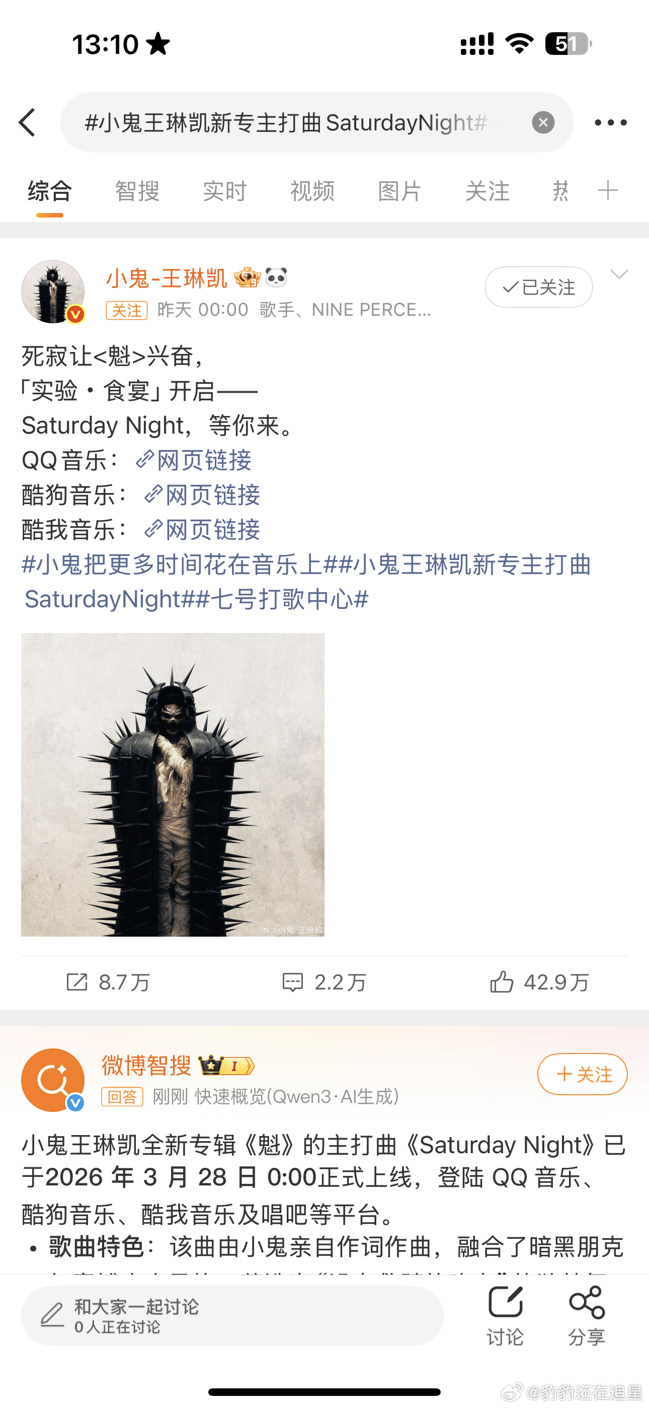 小鬼杀疯了!新专主打曲《Saturday Night》正式上线,电子节奏+拽酷腔调,一听就上头🔥把更多时间花在音乐上,用作品说话,这才是专业态度!循环播放安排起来~小鬼王琳凯新专主打曲SaturdayNight小鬼把更多时间花在音乐上 小鬼王琳凯
