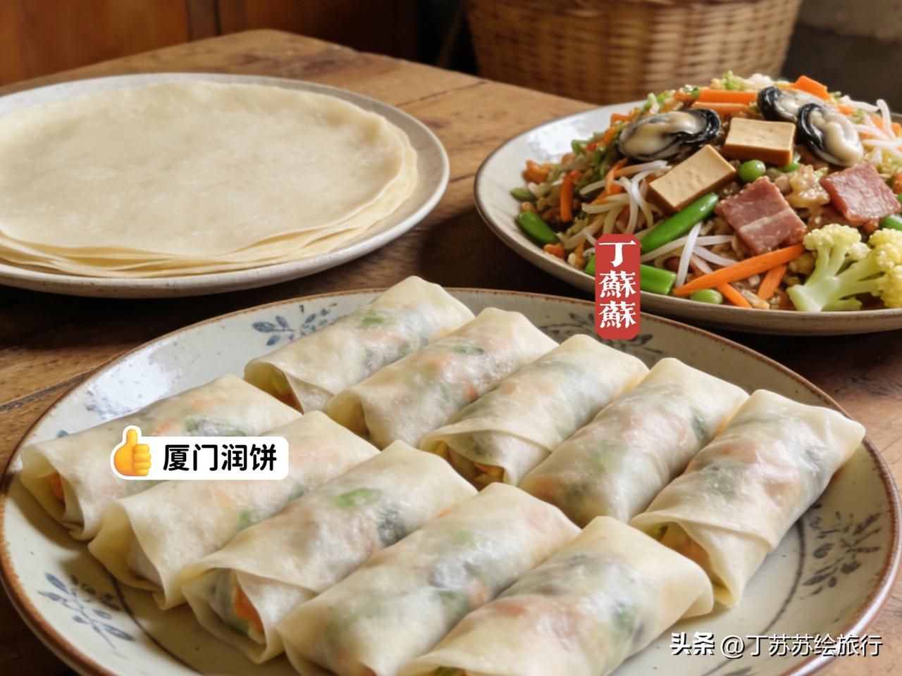 厦门的清明吃润饼!也是春饼、春卷,裹上各种小菜,应与二月春节有关,我不知道厦门有没有和福州一样会在里面放香干,但好像会放海蛎(?)。