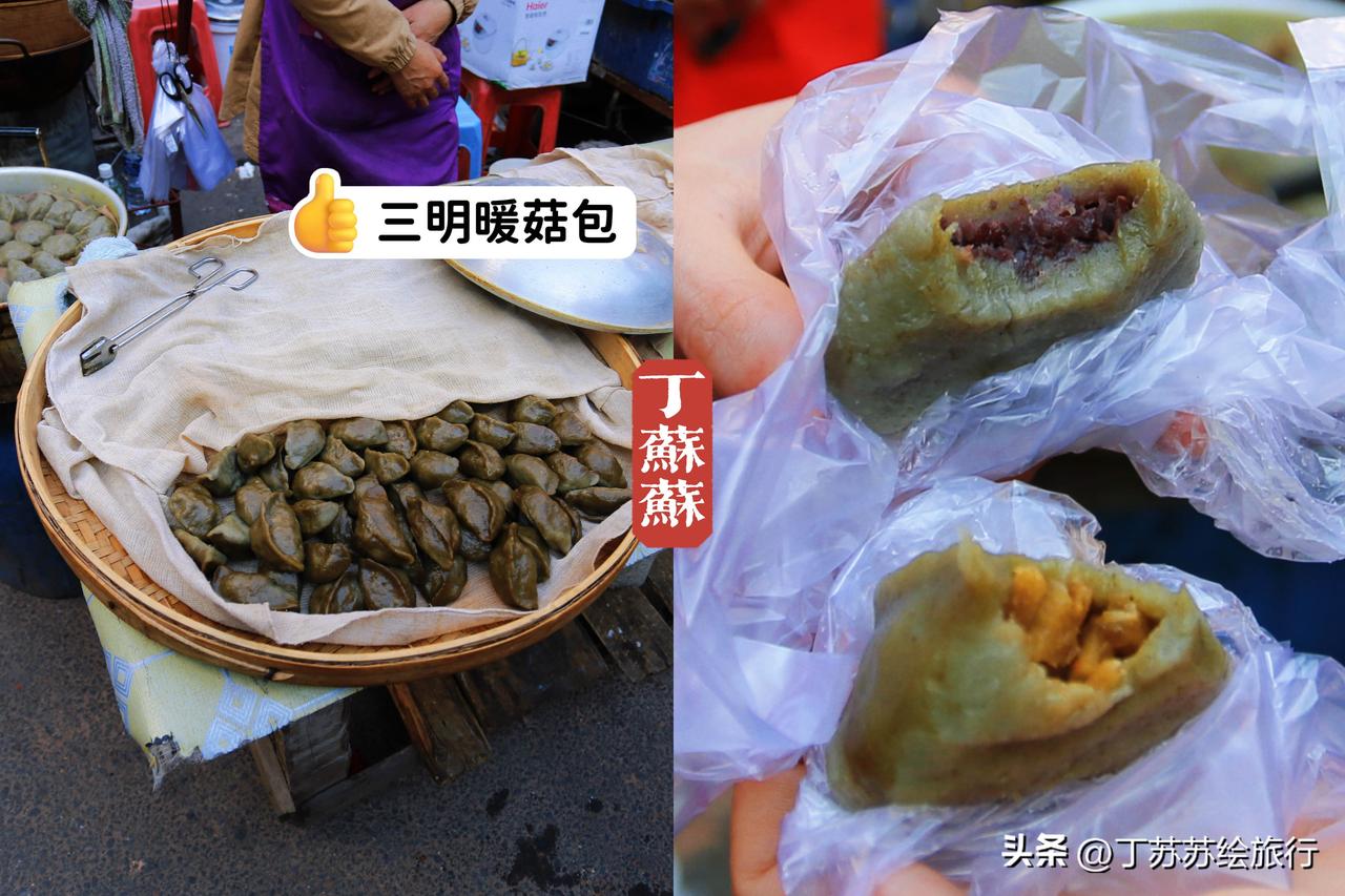 泰宁特色暖菇包(子),甜的红豆馅,咸的有腊肉、香菇、笋丝、虾米做成馅,加了虾米的口感刺刺,我比较吃不来。