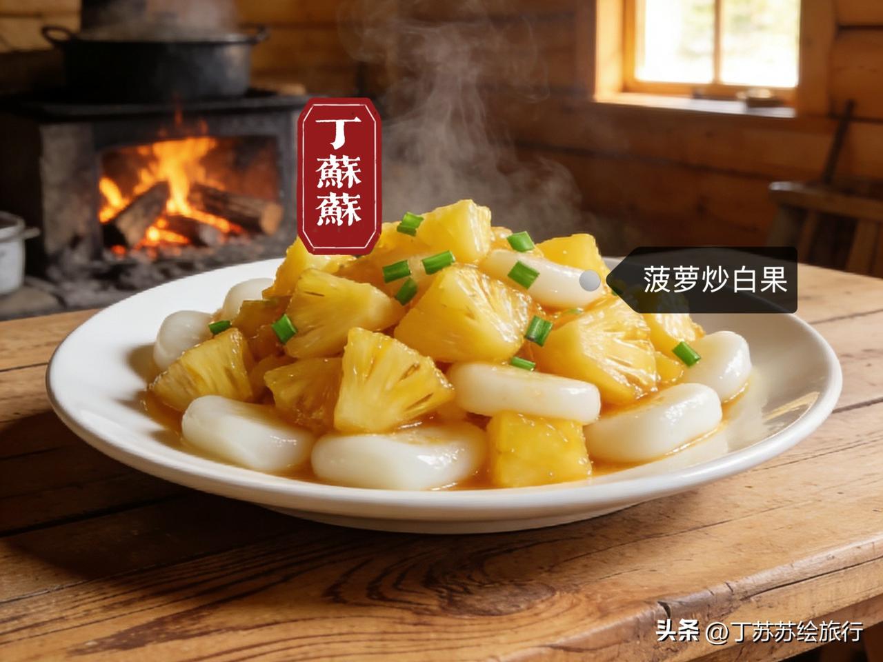 这道福州菜现在会做的店很少,对菠萝的要求是得酸酸甜甜,炒出来有汁才行,这些年吃过几家都没有吃到回忆里的那种5块一盘的菠萝香了。