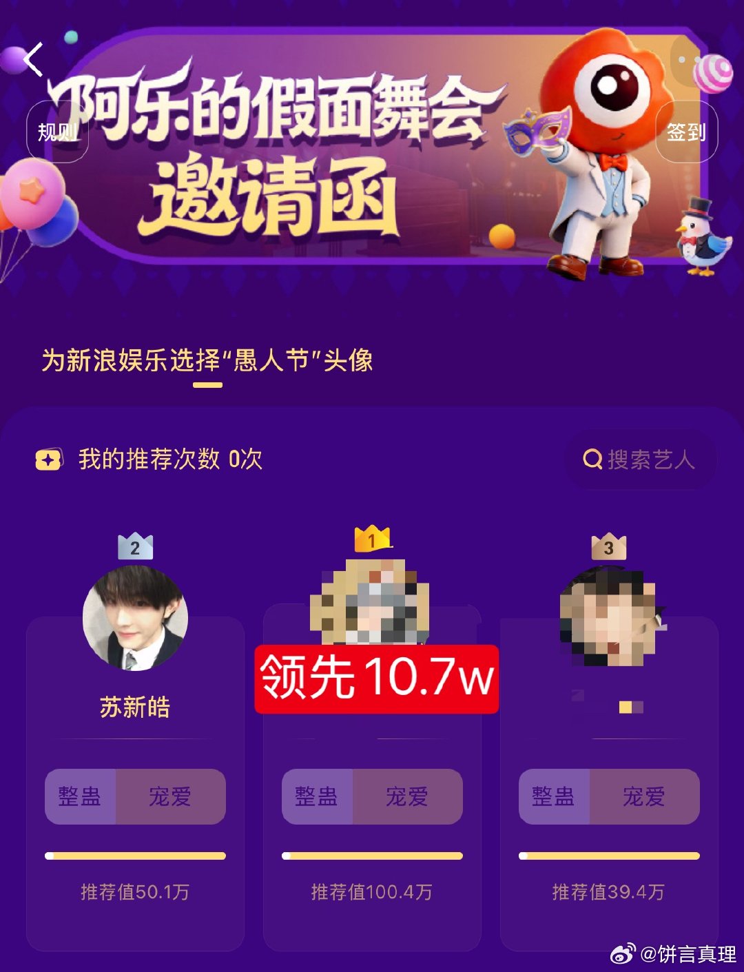 差距在暗戳戳缩小的宝贝们,不要觉得差10w就不动或者只🎲基础🎫不做任务1️⃣关㊗️过新浪娱乐的先取关网页链接2️⃣点进活动页面阿乐的假面舞会邀请函先将基础漂数送出3️⃣依次完成任務再将宠爱值送出即可!