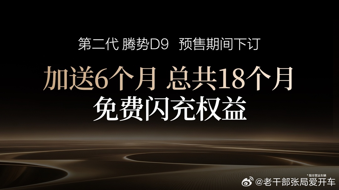 3月29日,第二代腾势D9开启预售,预售价38.98万-48.98万元。新车全系标配第二代刀片电池及闪充技术,分别提供三款插混和三款纯电车型。官图还预告新车将基于全新底盘架构并搭载全新悬架系统(个人推测或加空悬升级为云辇A)。