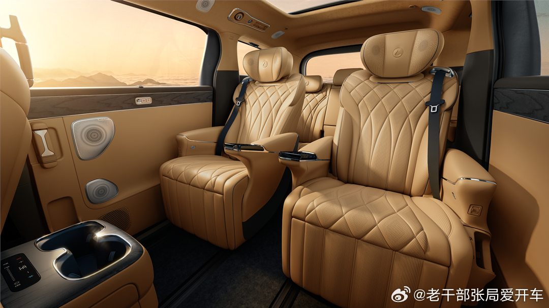 此外,空间布局、内饰、智能座舱和安全功能均有升级。采用怀档升级,优化中控扶手布局;搭载Nappa真皮座椅;新增可开闭的副驾娱乐屏,打开屏幕时盖板变为小桌板;新增后排三屏娱乐系统,包括17.3英寸吸顶屏和双磁吸头枕屏。
