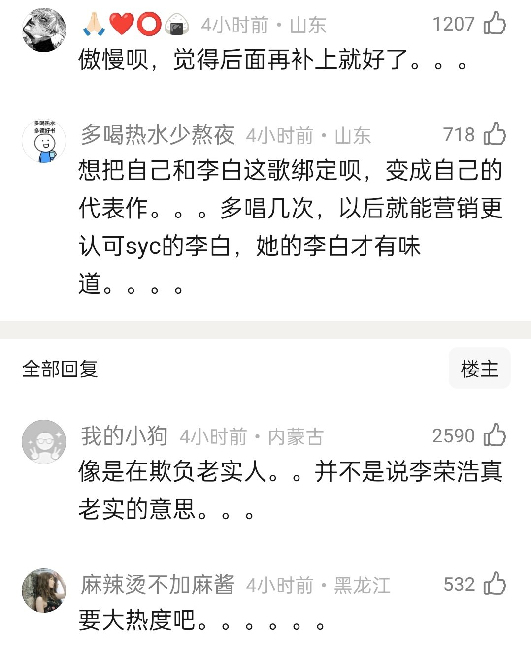 李荣浩新微博热转好多说李荣浩不应该闹这么大,让他得饶人处且饶人李荣浩4连质问单依