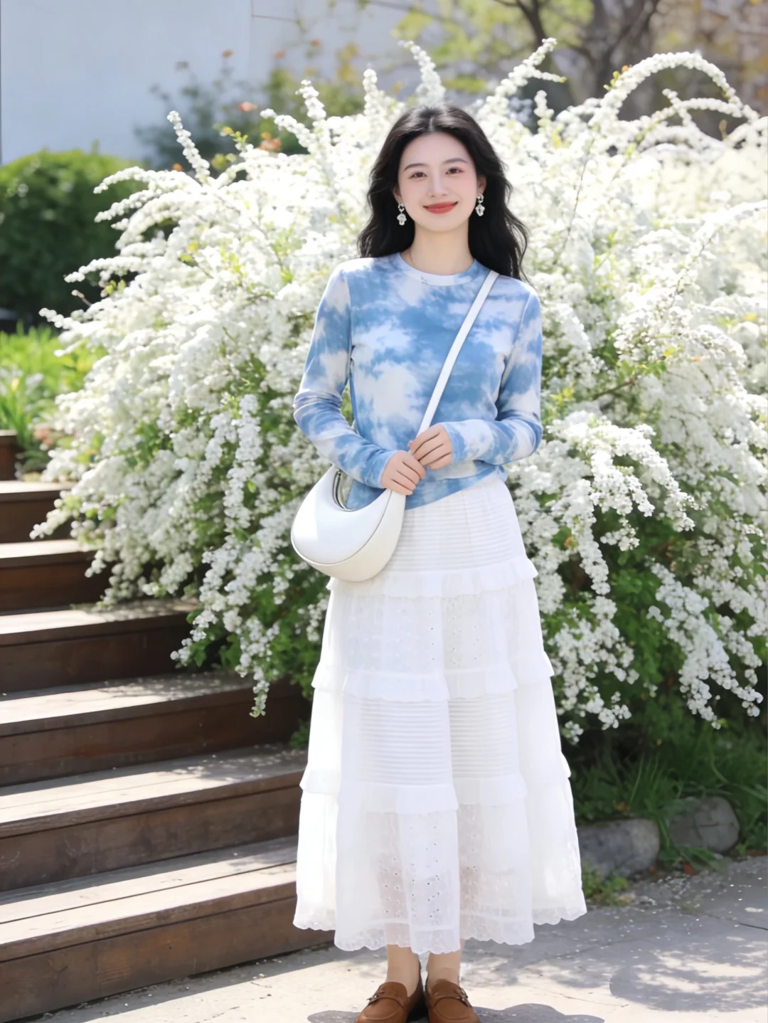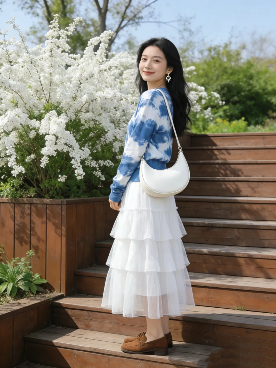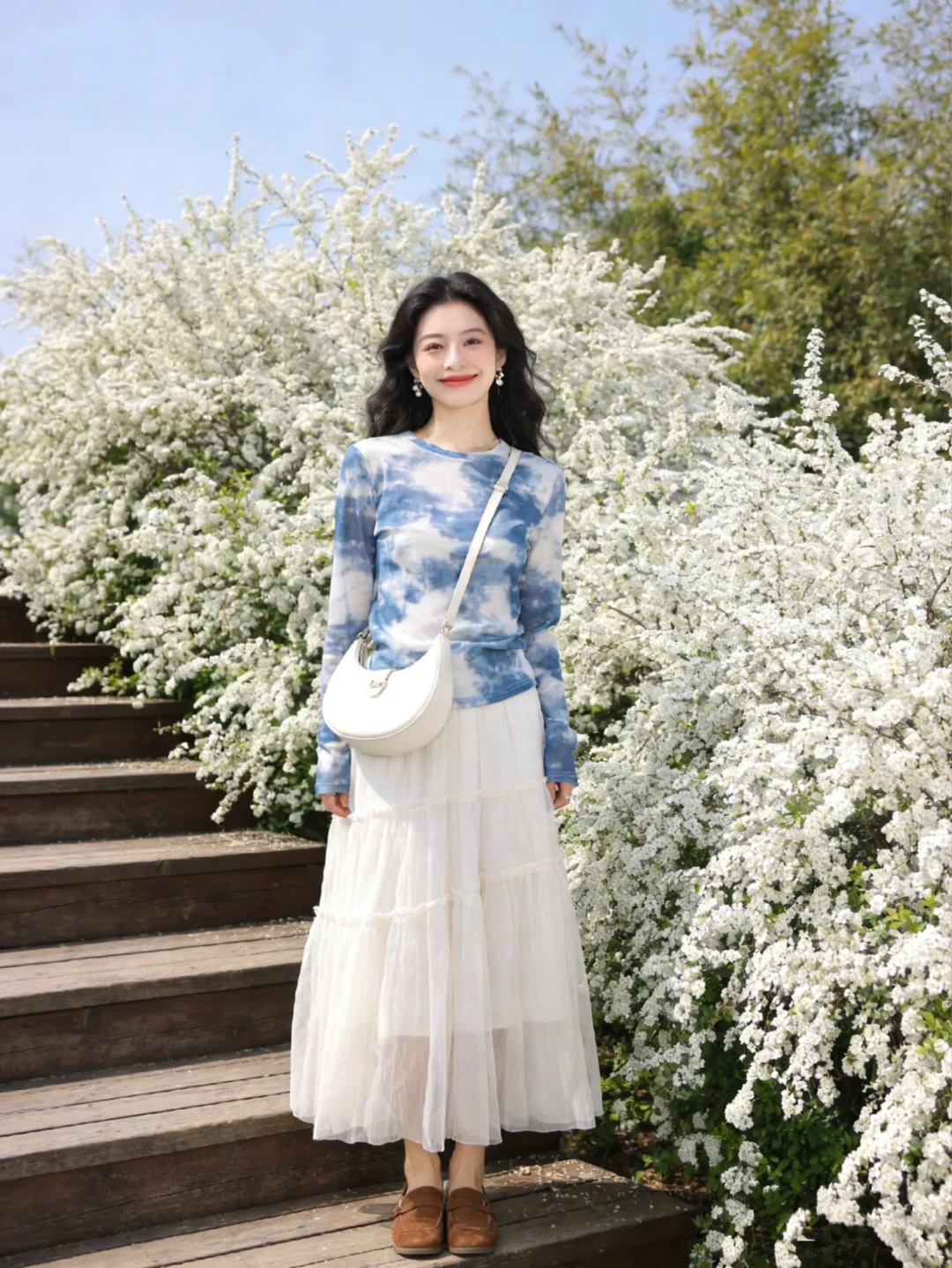 赏花穿什么 温柔穿搭风 我在鲜花盛开中兜售春天 花美人更美 纱纱裙搭配 晕染上衣 扎染上衣 ootd穿搭