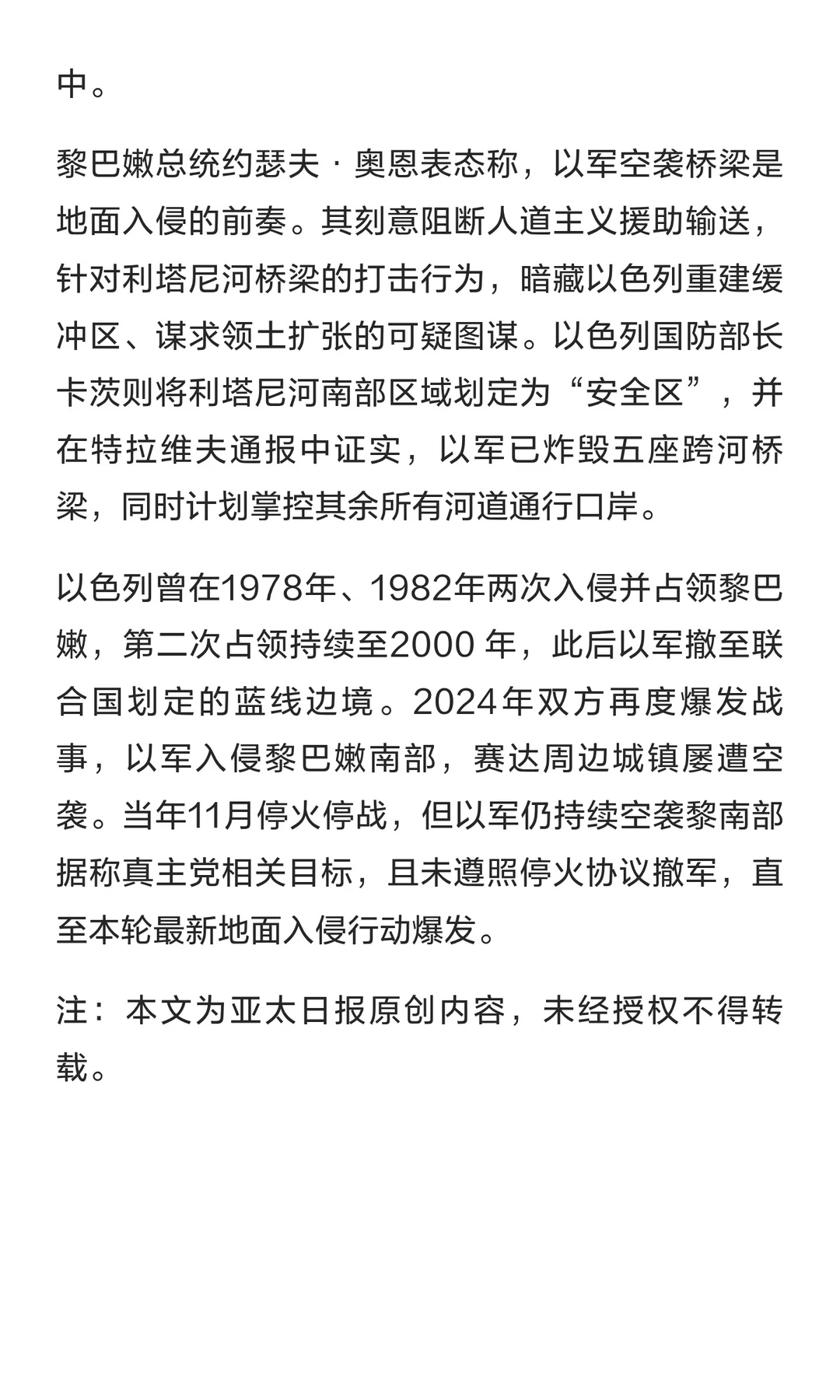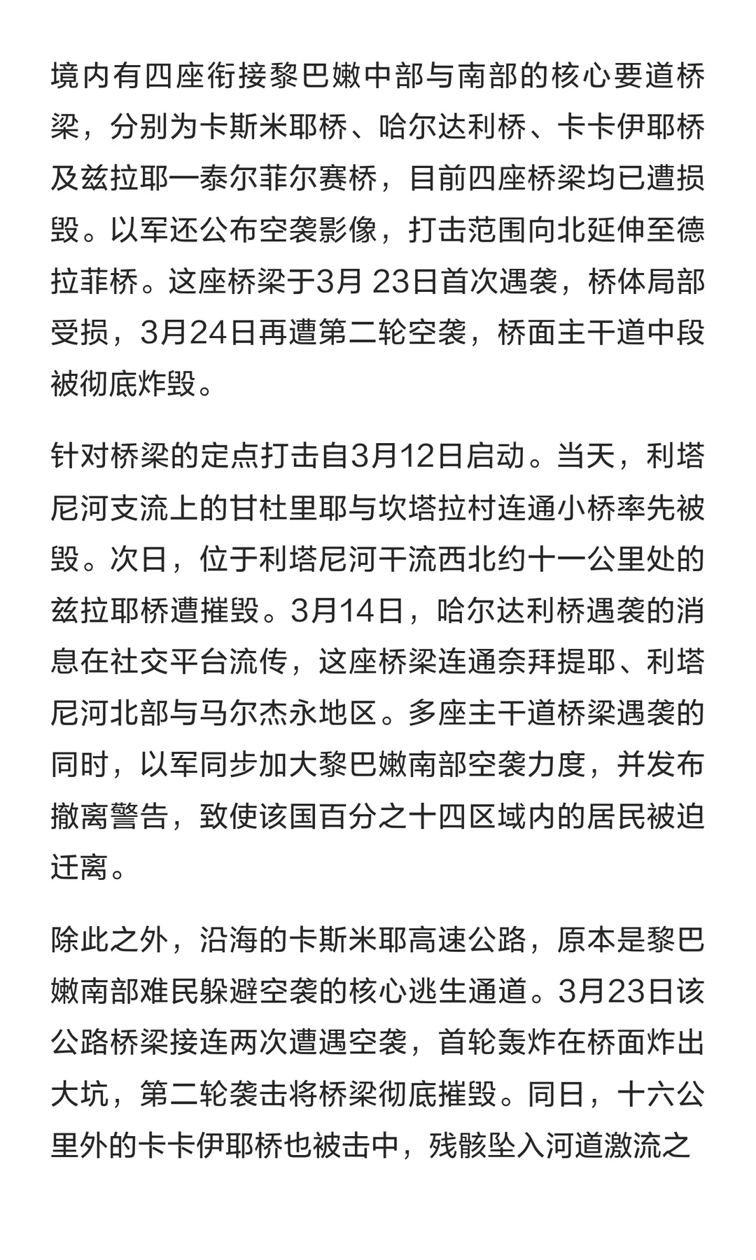 扩大袭击!以军打击黎巴嫩重要桥梁