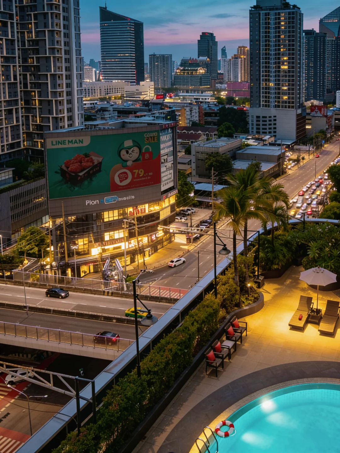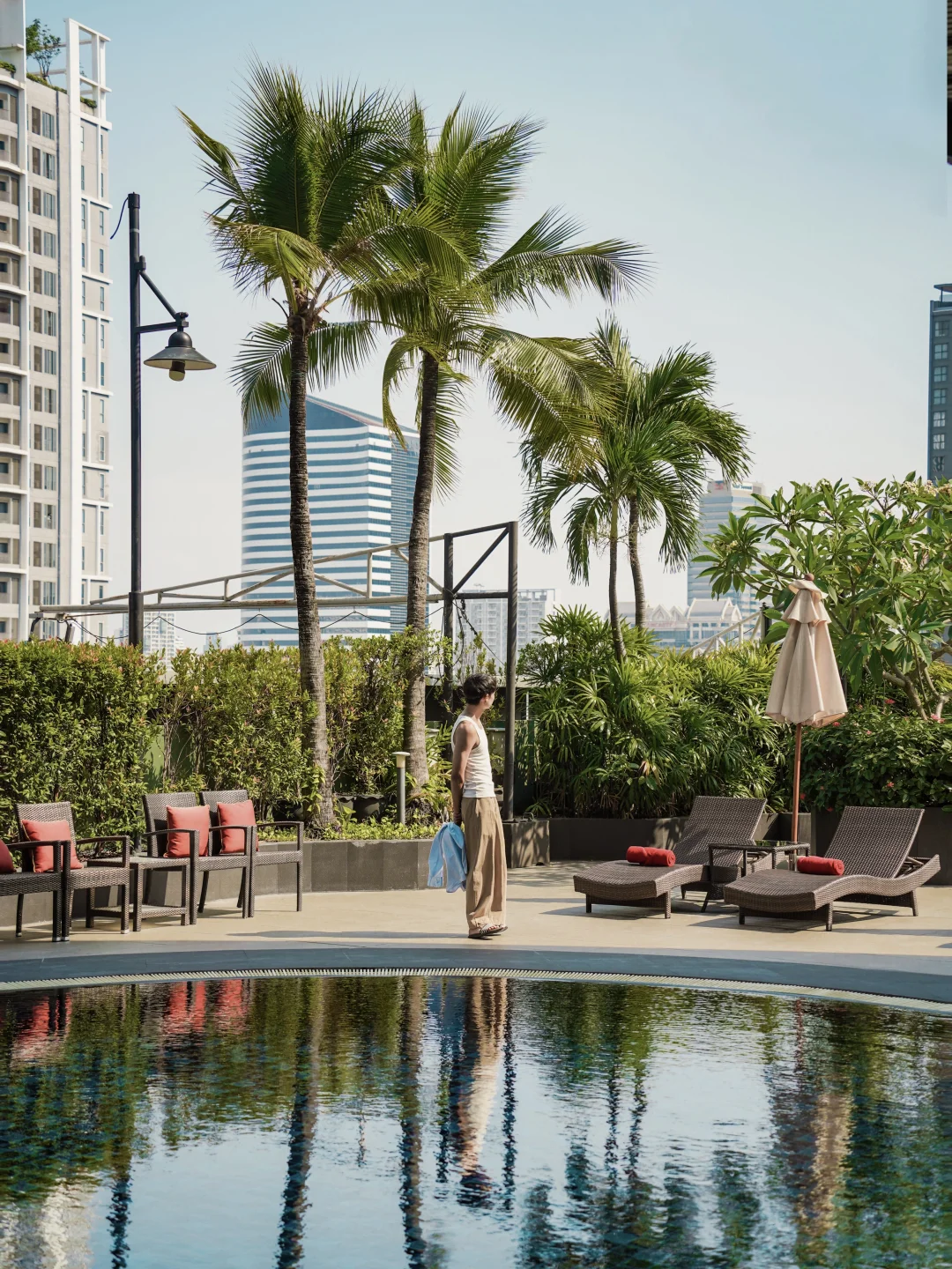 躺在泳池边,抬头就是曼谷的天际线🌃